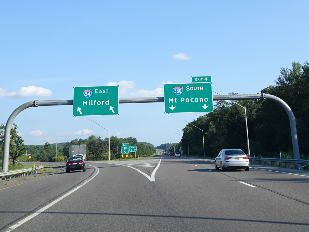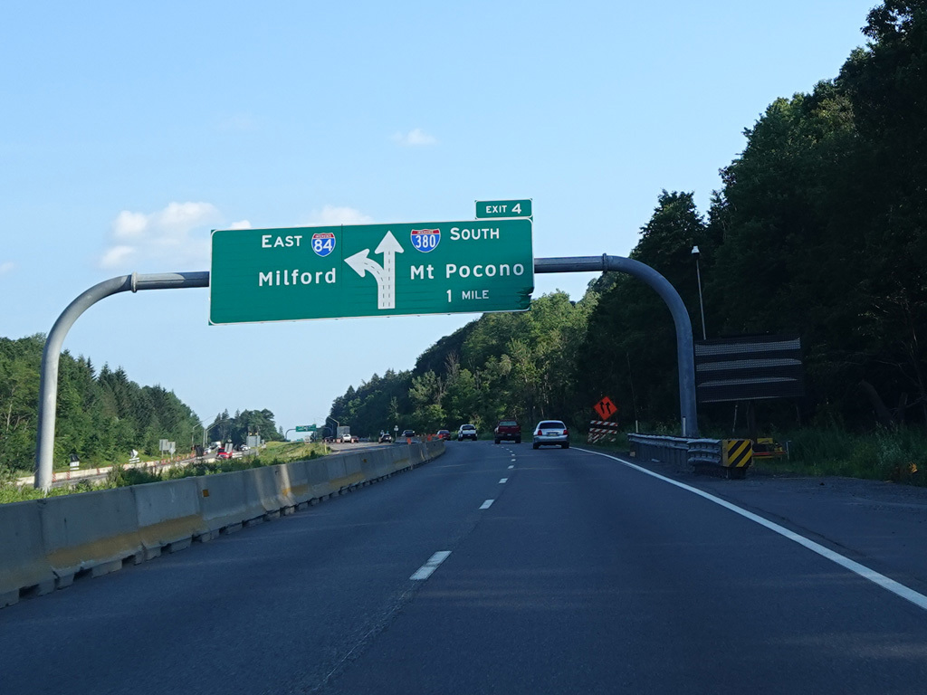 I-84 begins at I-81 in Dunmore. It is multiplexed with I-380 for the first few exits. Exit 1 is for Tigue Street.