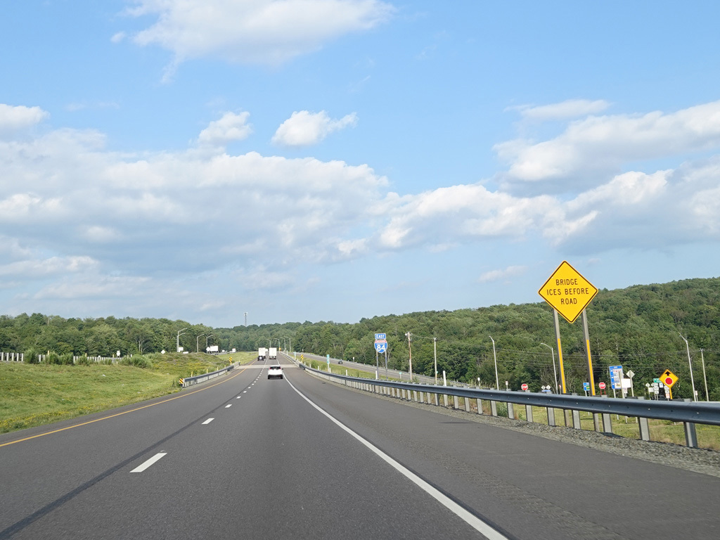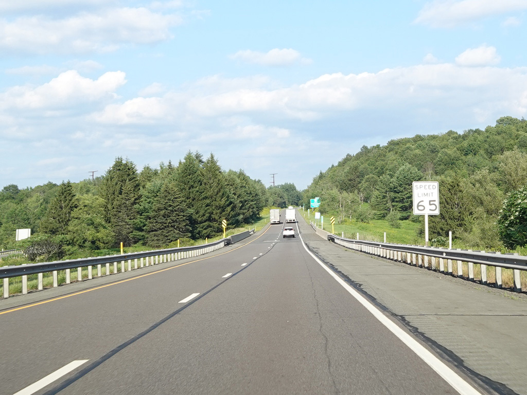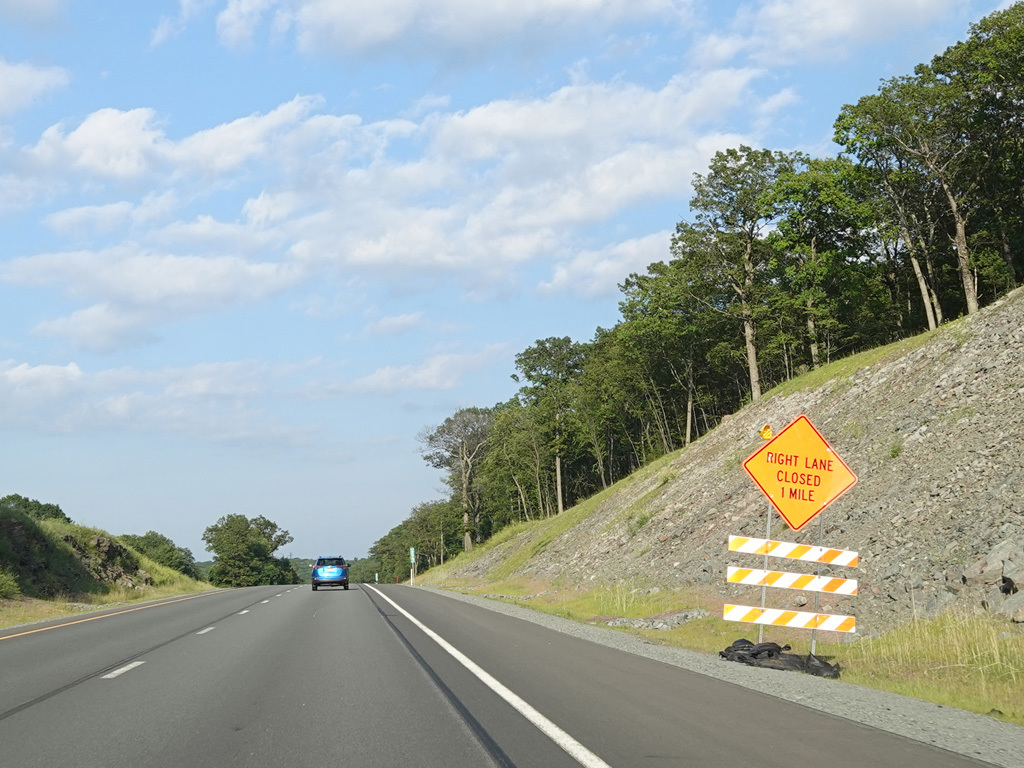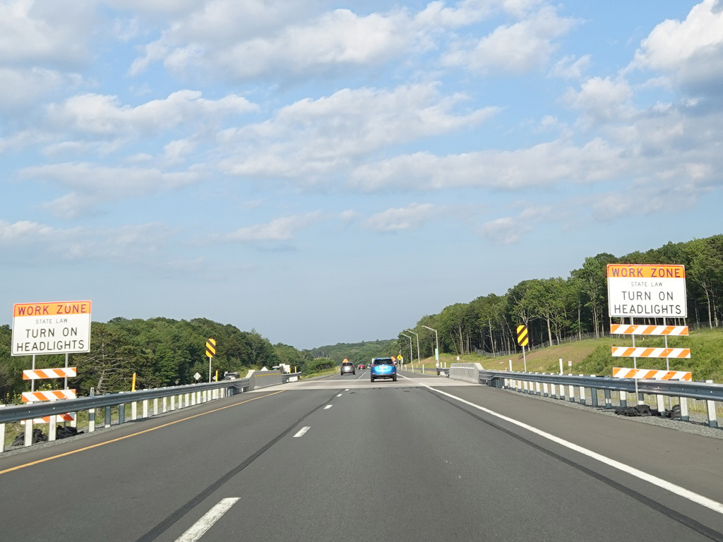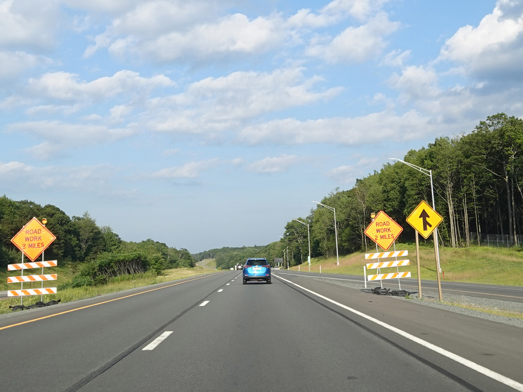 Exit 53 is for Pennsylvania Avenue (US 6/US 209). Due to construction, all traffic is forced into what are normally the eastbound lanes, with one lane for each direction. There is a temporary ramp crossing over to the westbound lanes to provide access to the exit.