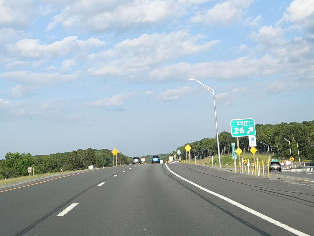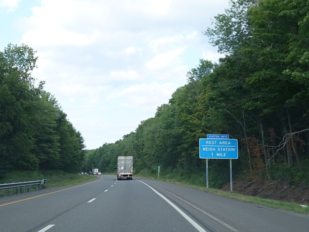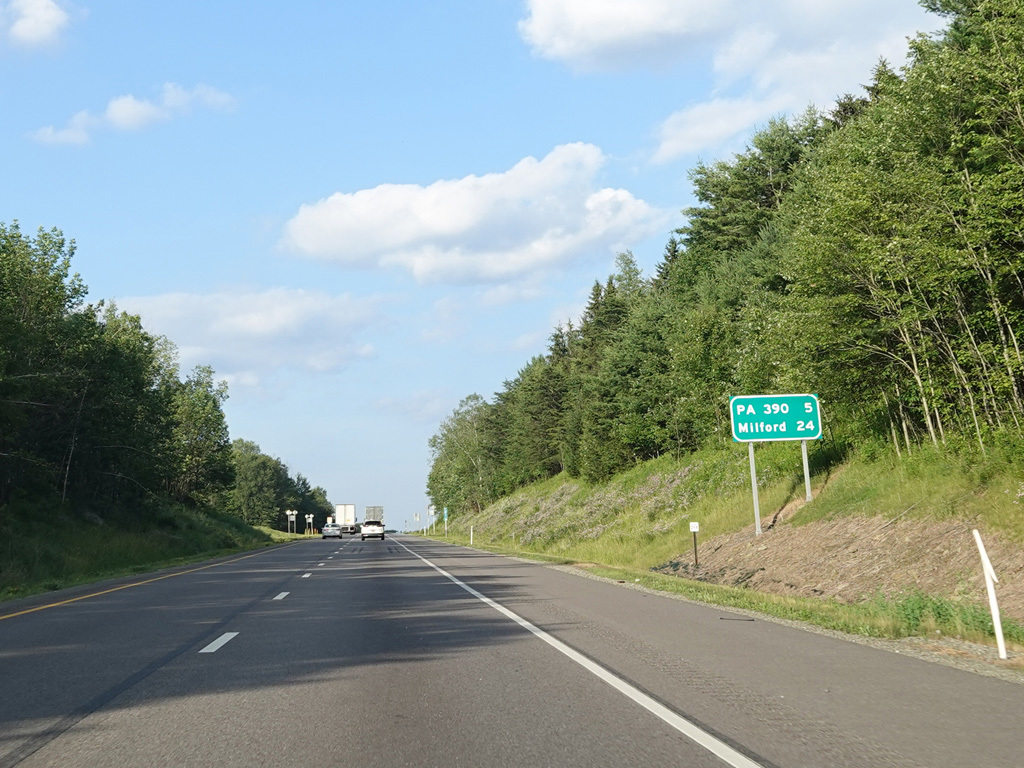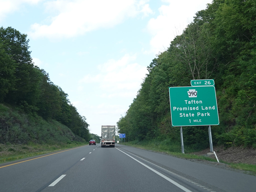 Exit 26 is for PA 390. There is a rest area and weigh station just before the exit.