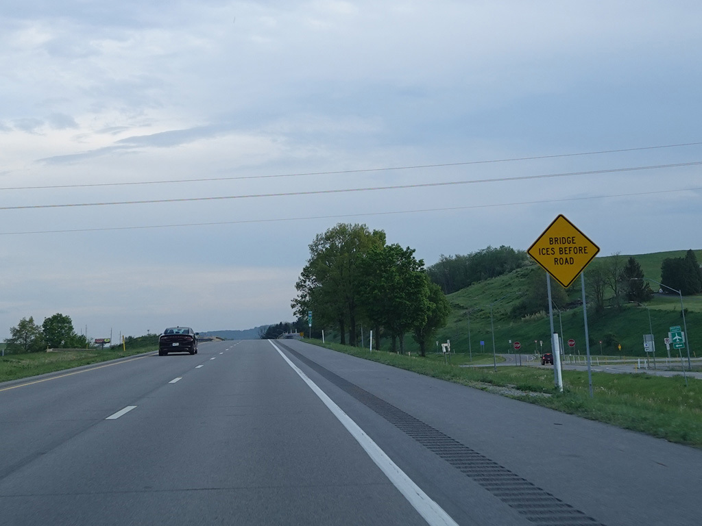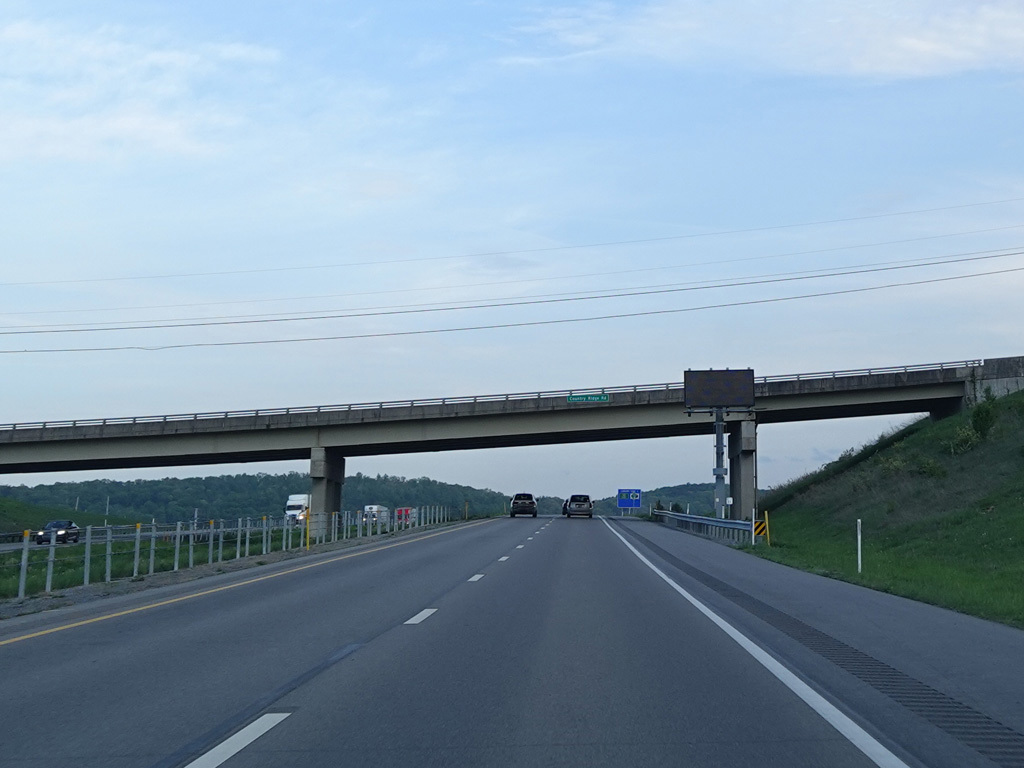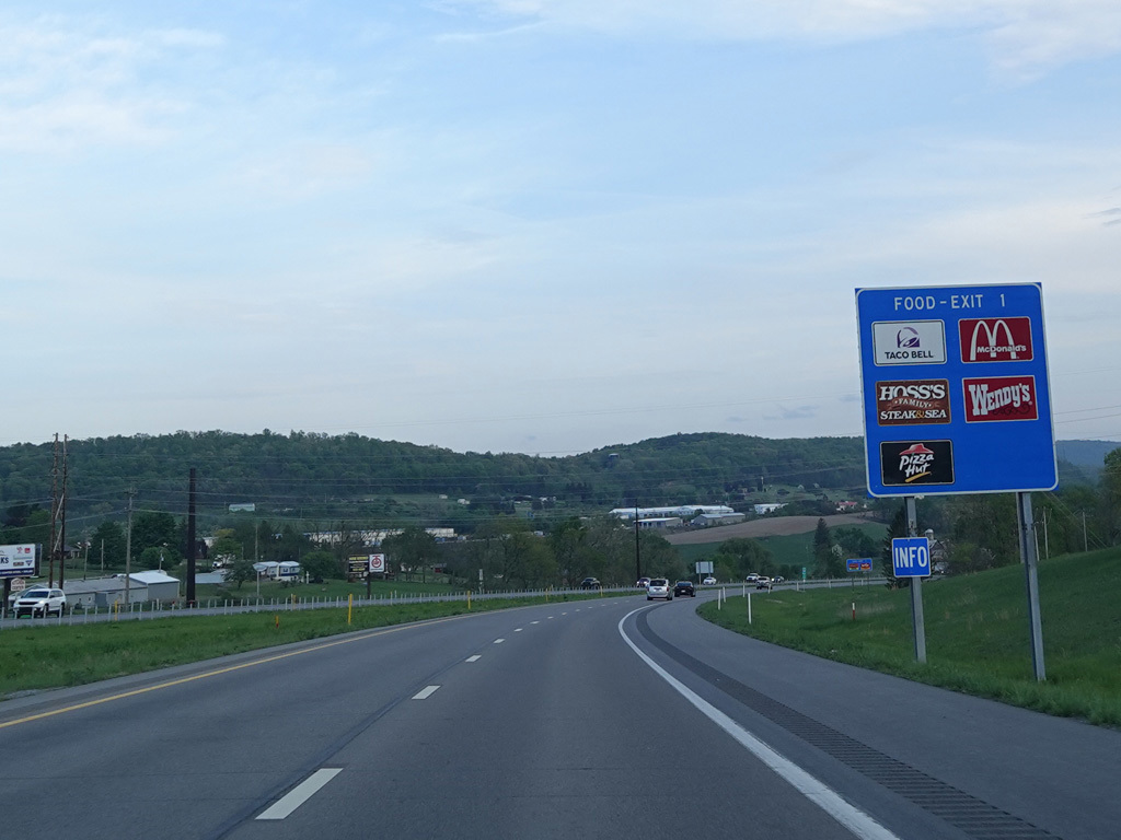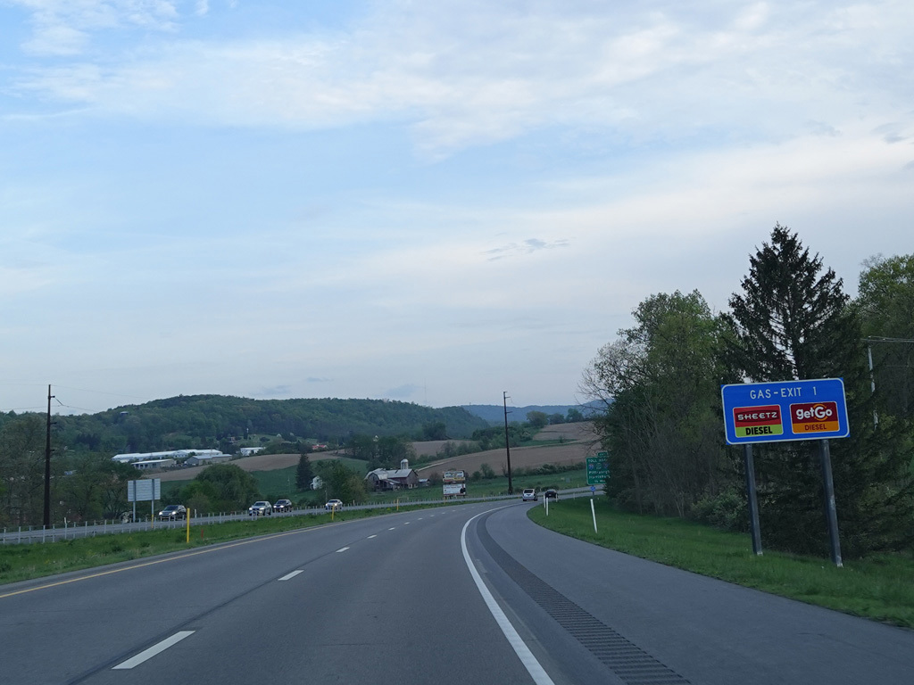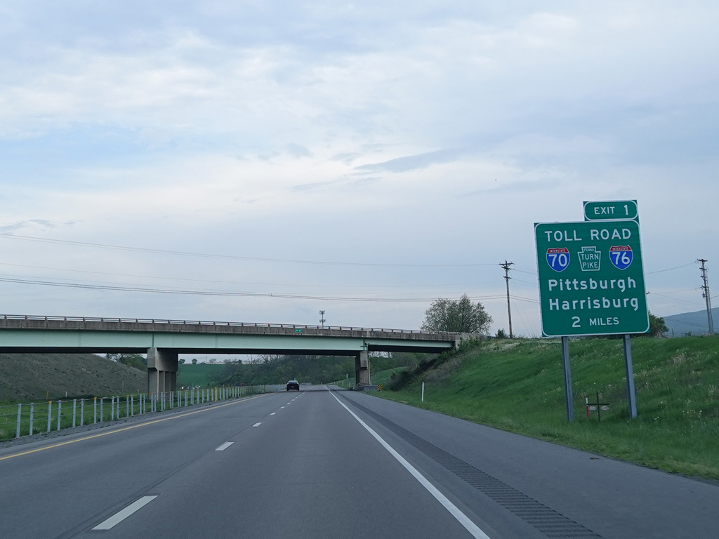 Exit 1 is for the Pennsylvania Turnpike (I-70/I-76). The exit leads to Business US 220, from which there is access to the turnpike. I-99 ends here. Continue straight ahead for US 220 south.