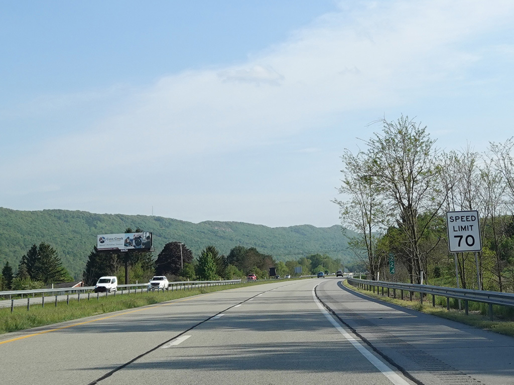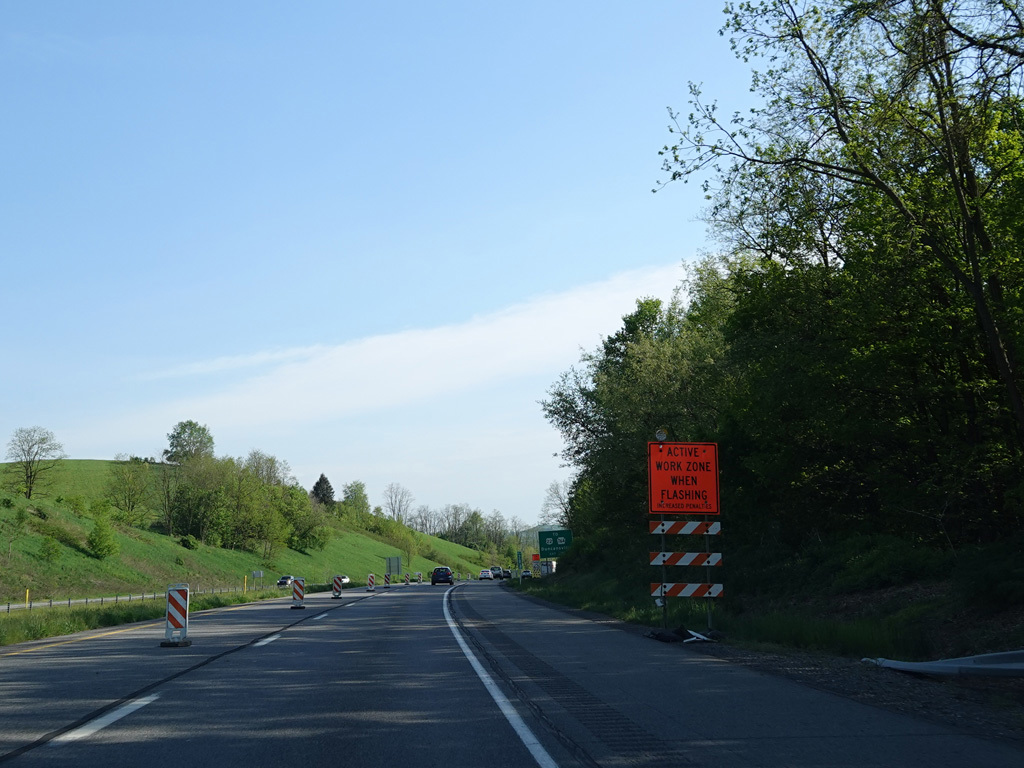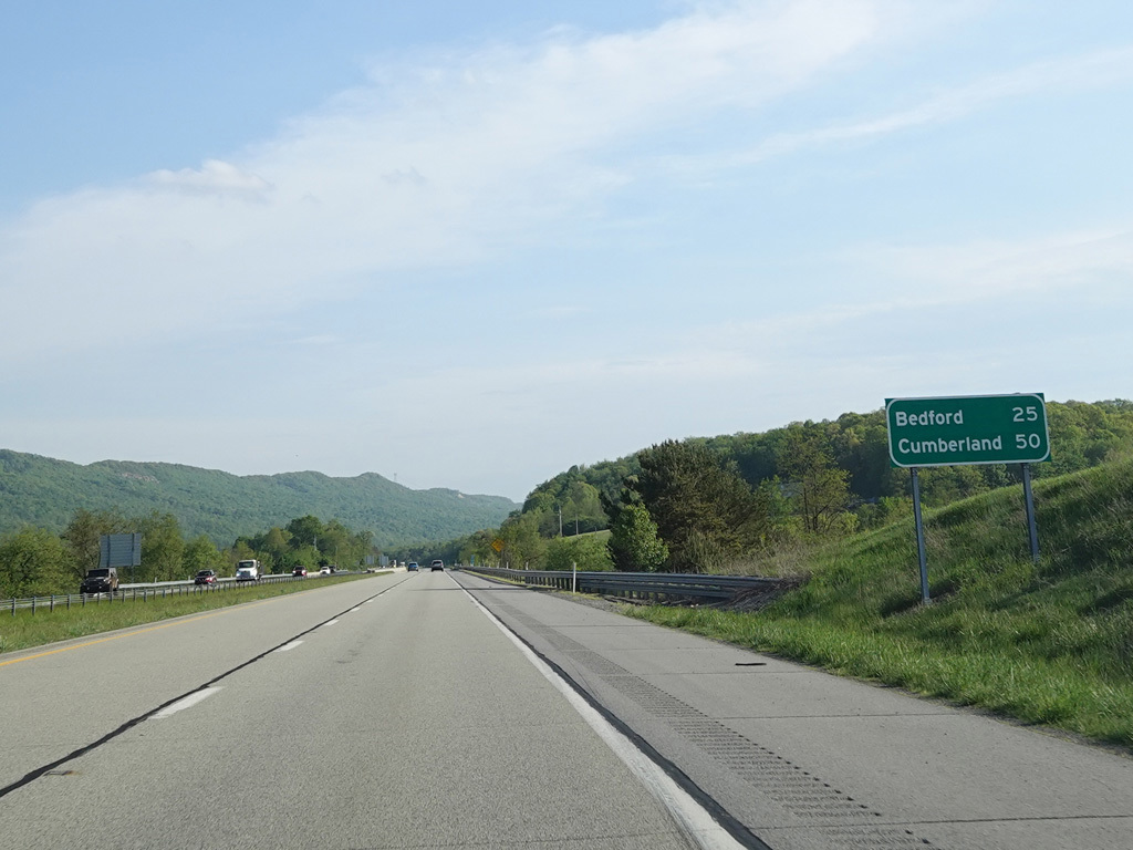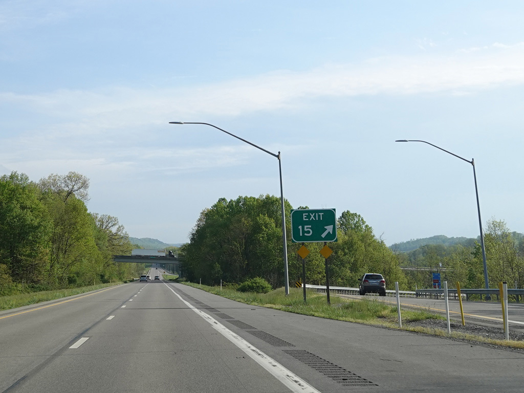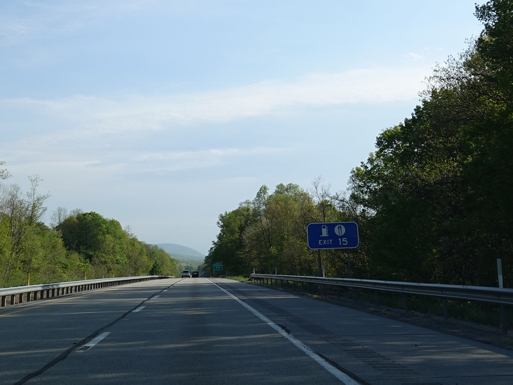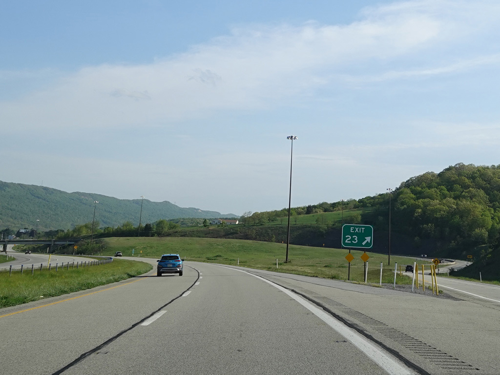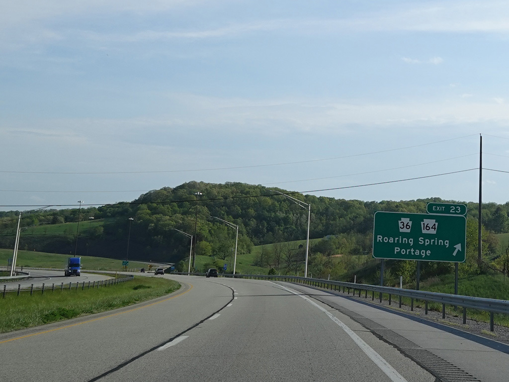 Exit 23 is for Charger Highway (PA 36), Woodbury Pike (PA 164), and Dunnings Highway (PA 164).