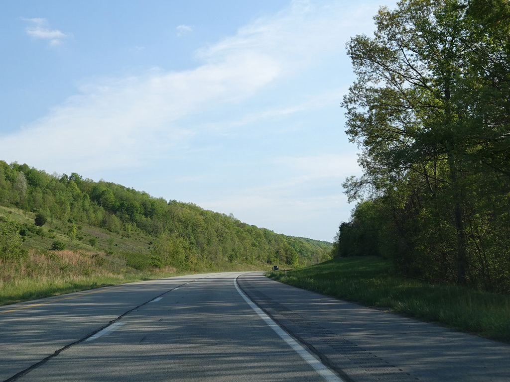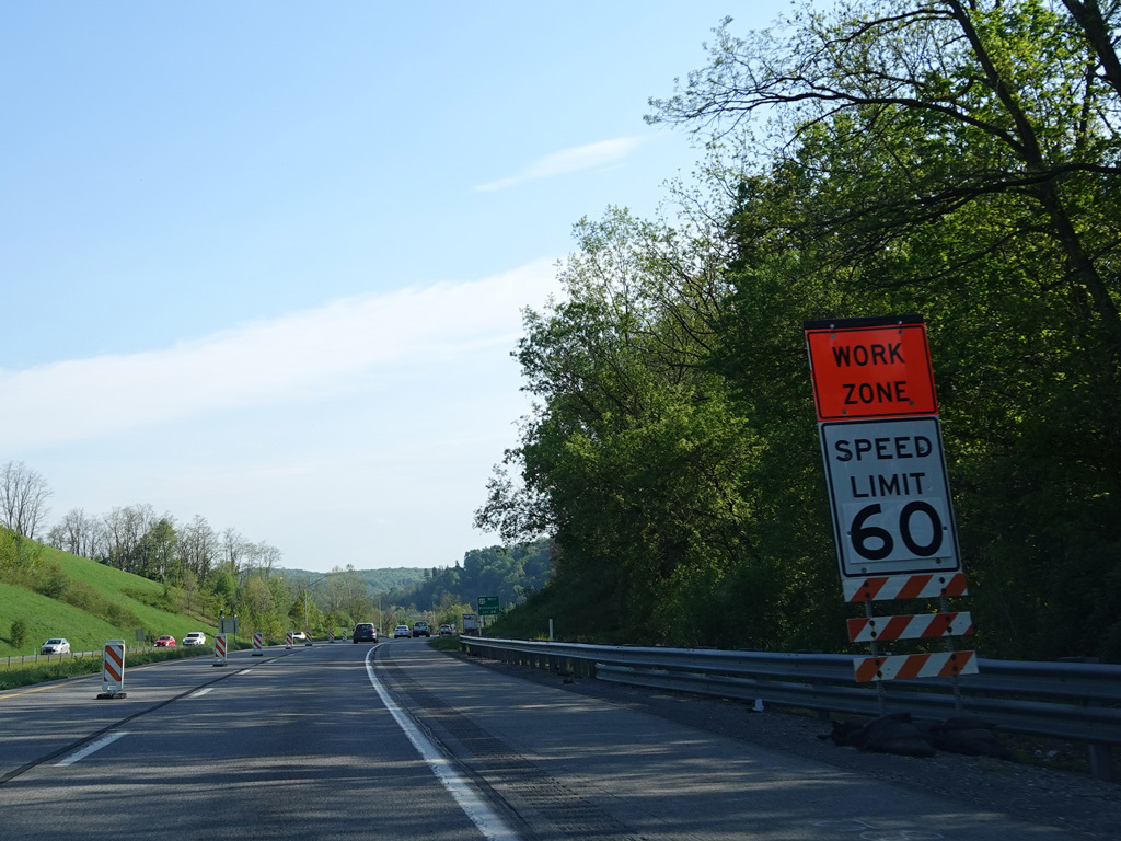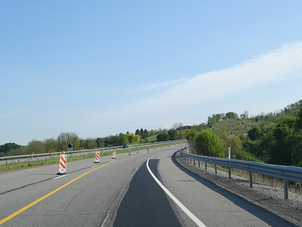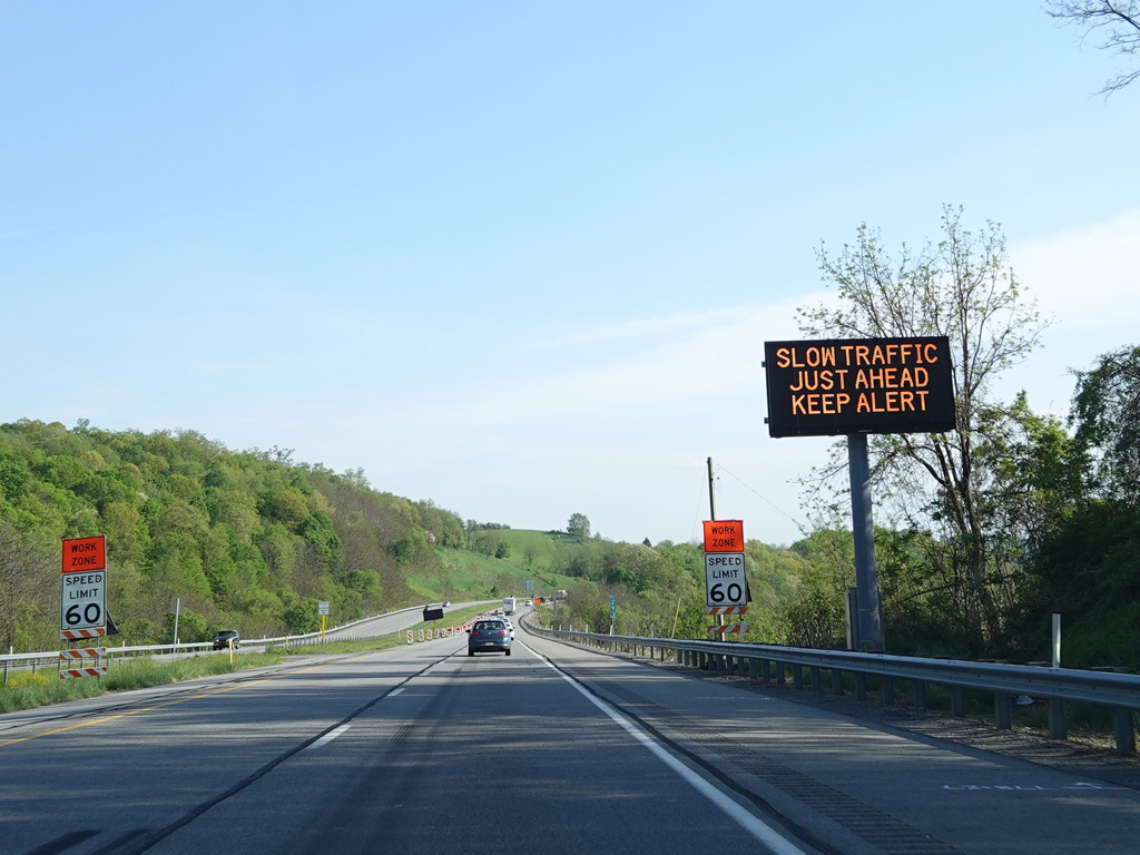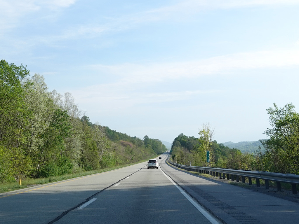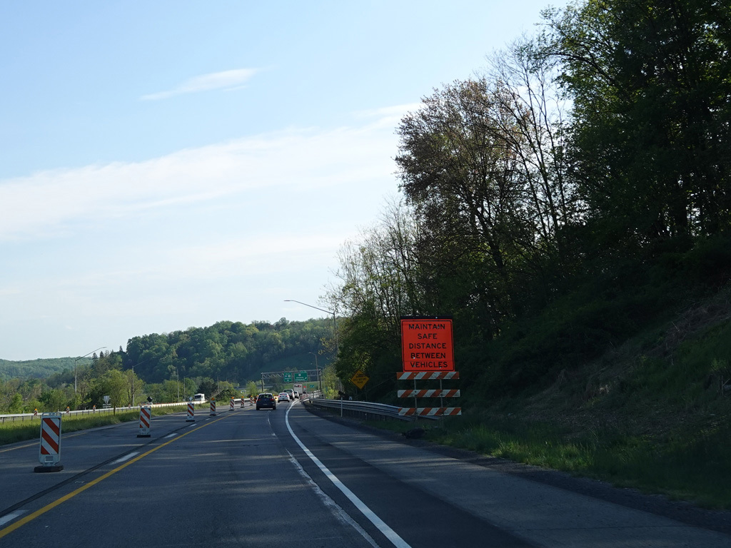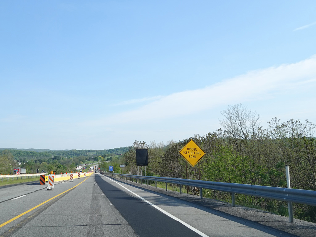 Exit 23 is for Charger Highway (PA 36), Woodbury Pike (PA 164), and Dunnings Highway (PA 164).