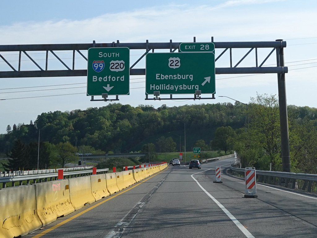 Exit 28 is for US 22. The exit also provides access to PA 764.