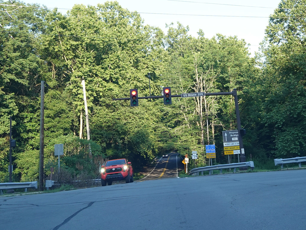 There is a traffic light at US 209. Turn left to go north or right to go south.
