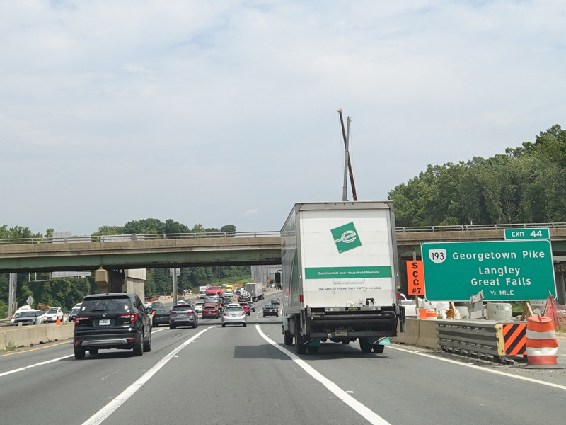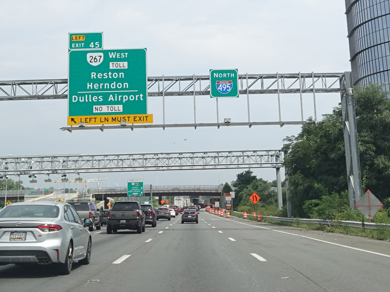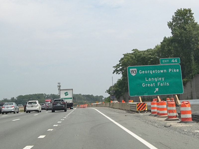 This picture shows the Capital Beltway north at exits 45-44 as it appeared while construction work was in progress to extend the express toll lanes north to the American Legion Memorial Bridge.