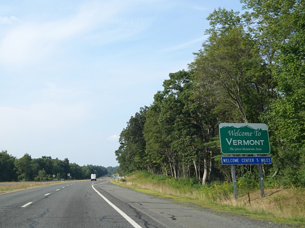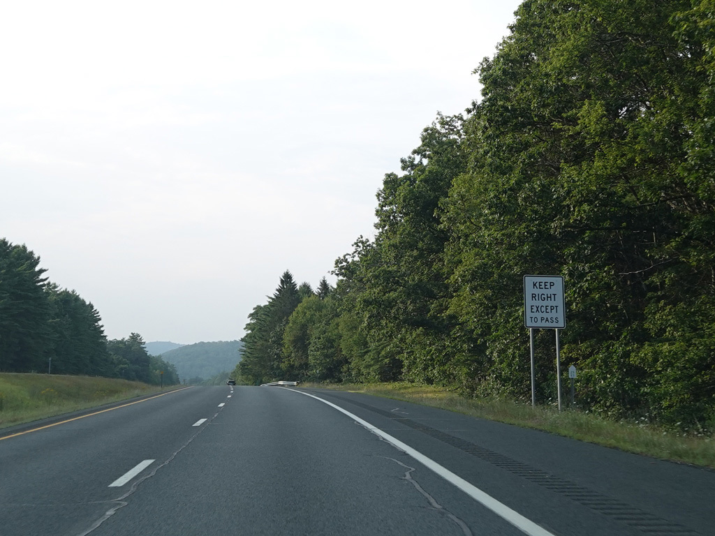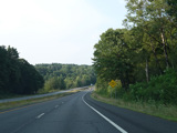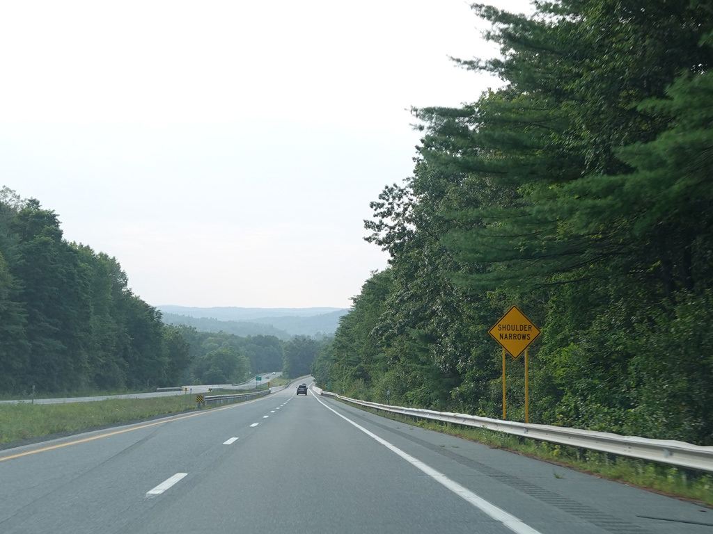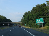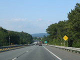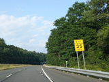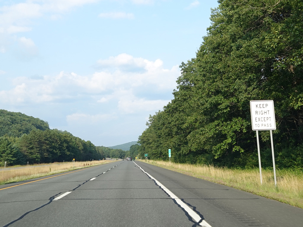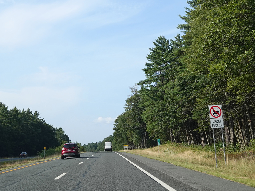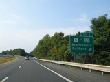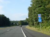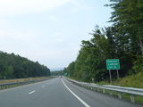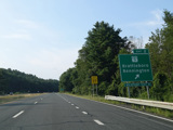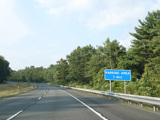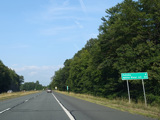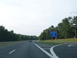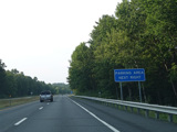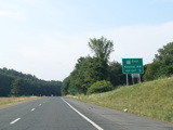 There are no exits for the first few miles in the state. There is signage in this area for various state laws, such as those on seatbelts, drunk driving, and cell phone use.