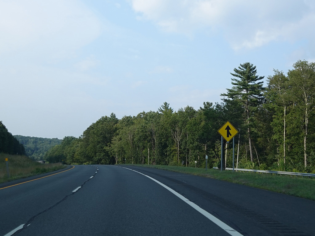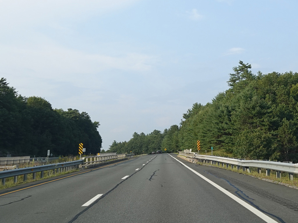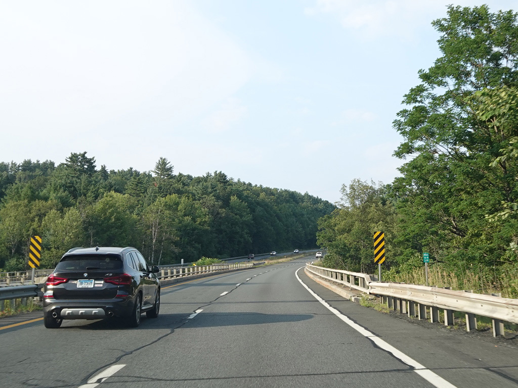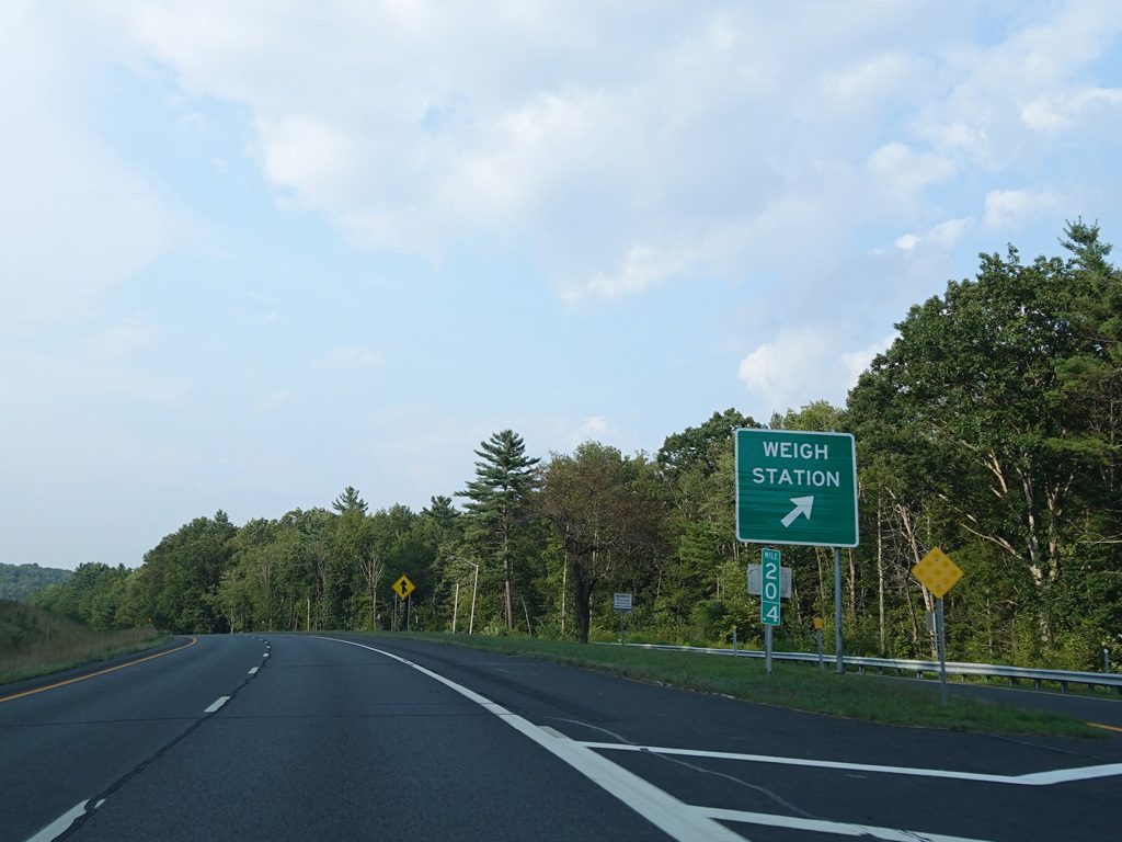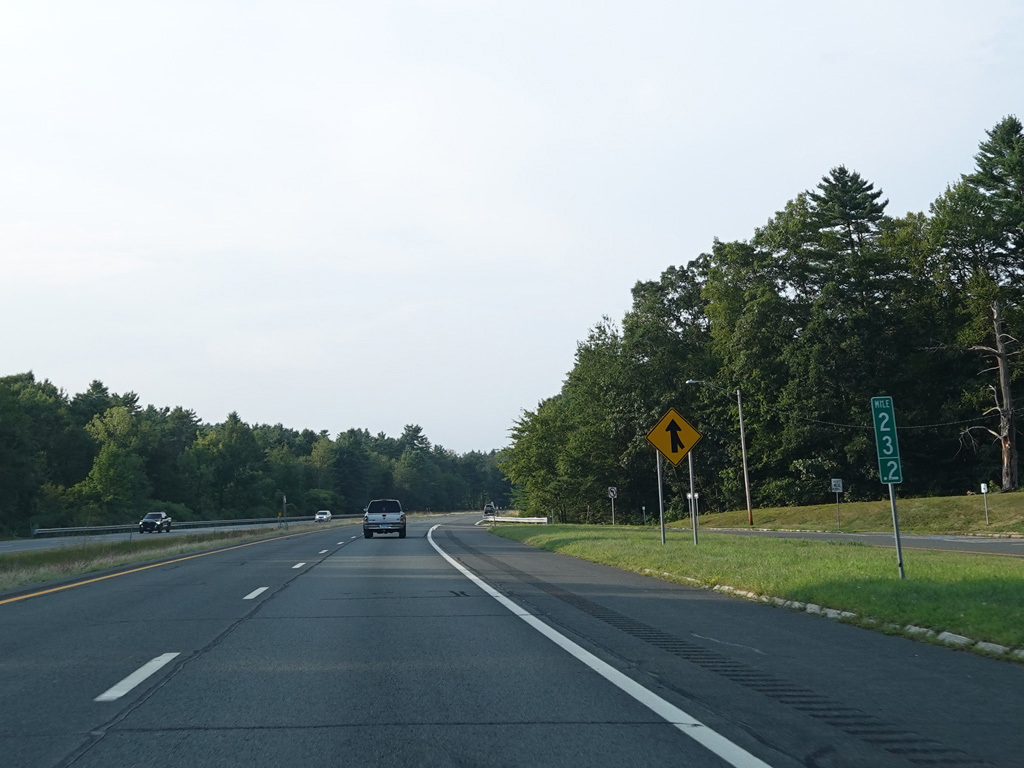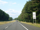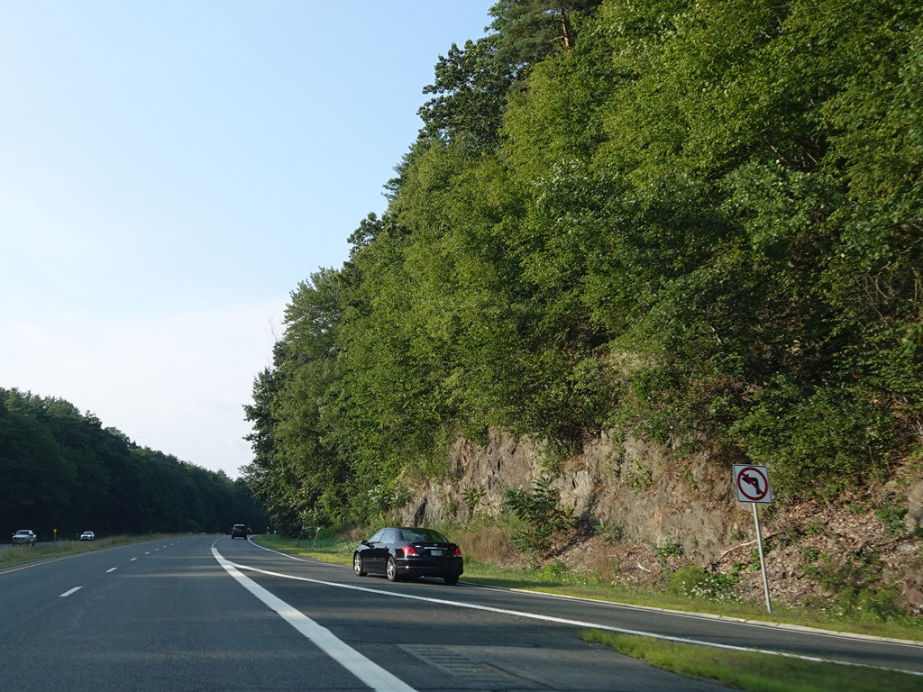 There are no exits for the first few miles in the state. There is signage in this area for various state laws, such as those on seatbelts, drunk driving, and cell phone use.