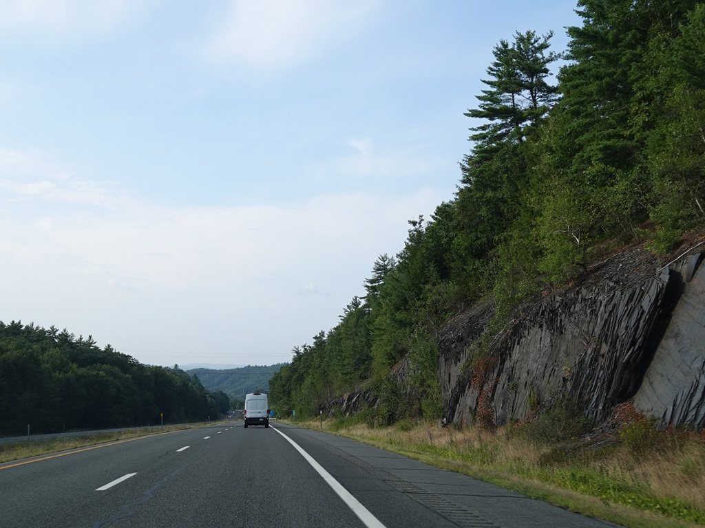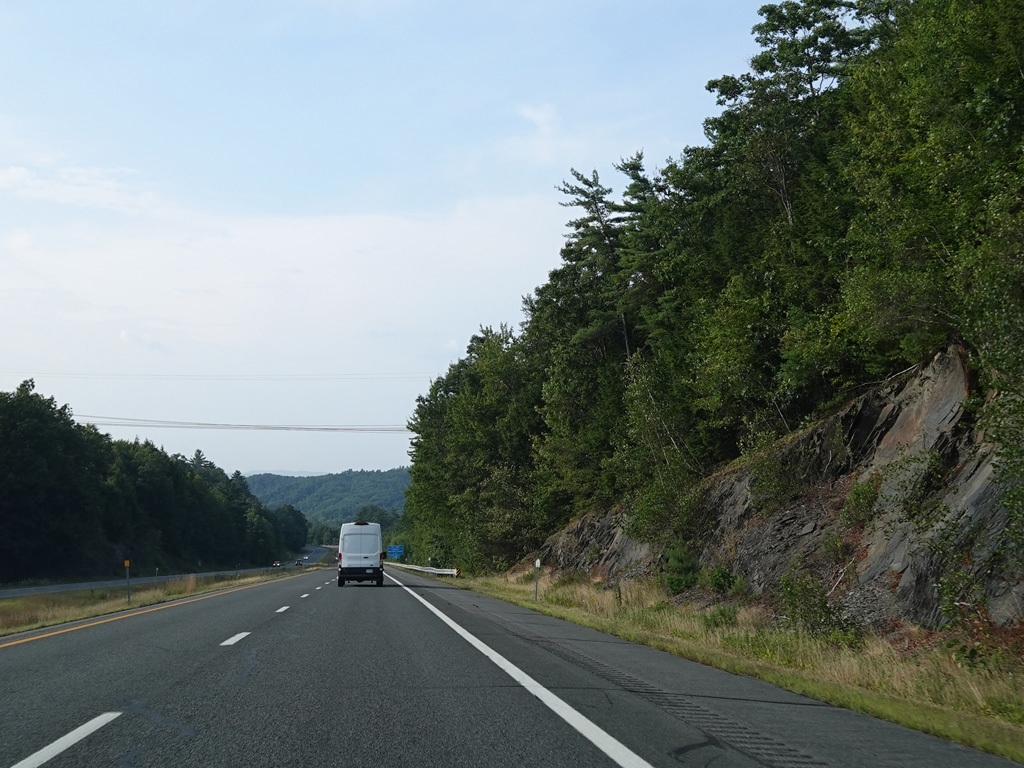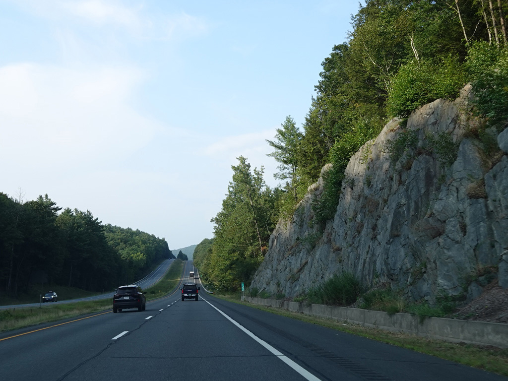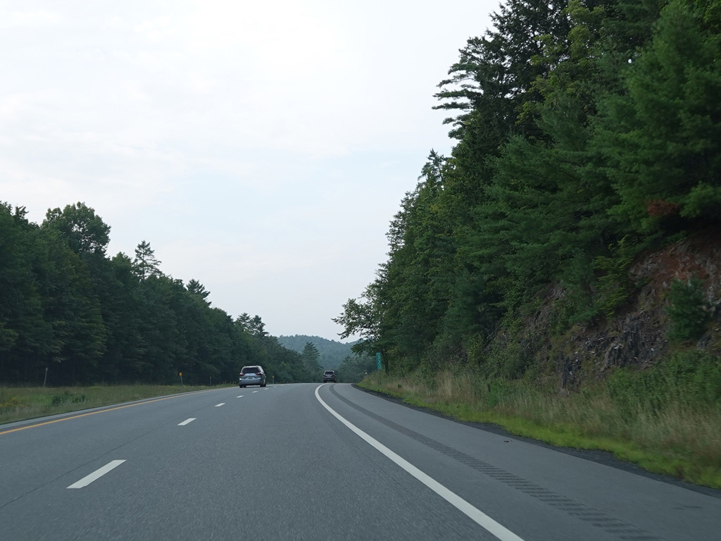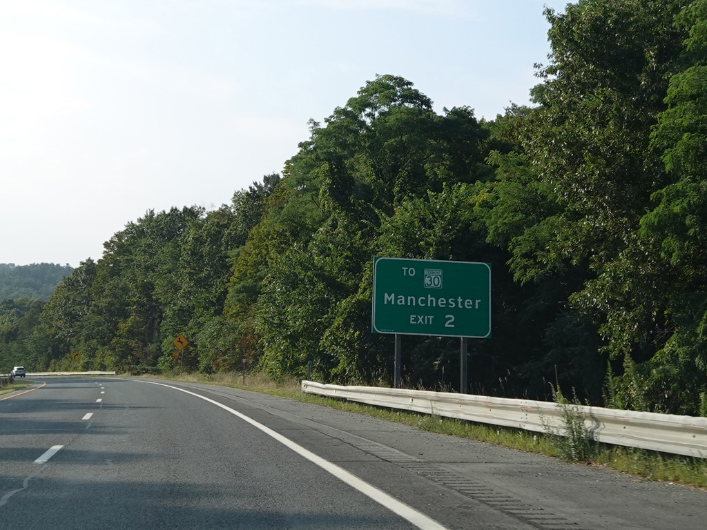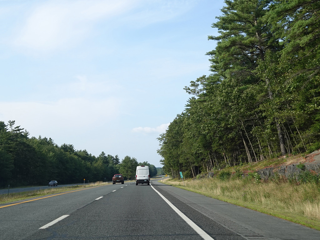 There are no exits for the first few miles in the state. There is signage in this area for various state laws, such as those on seatbelts, drunk driving, and cell phone use.