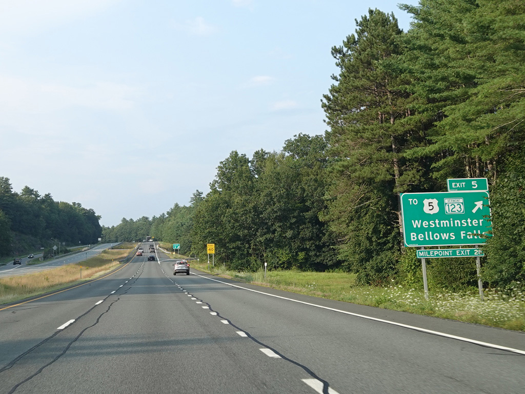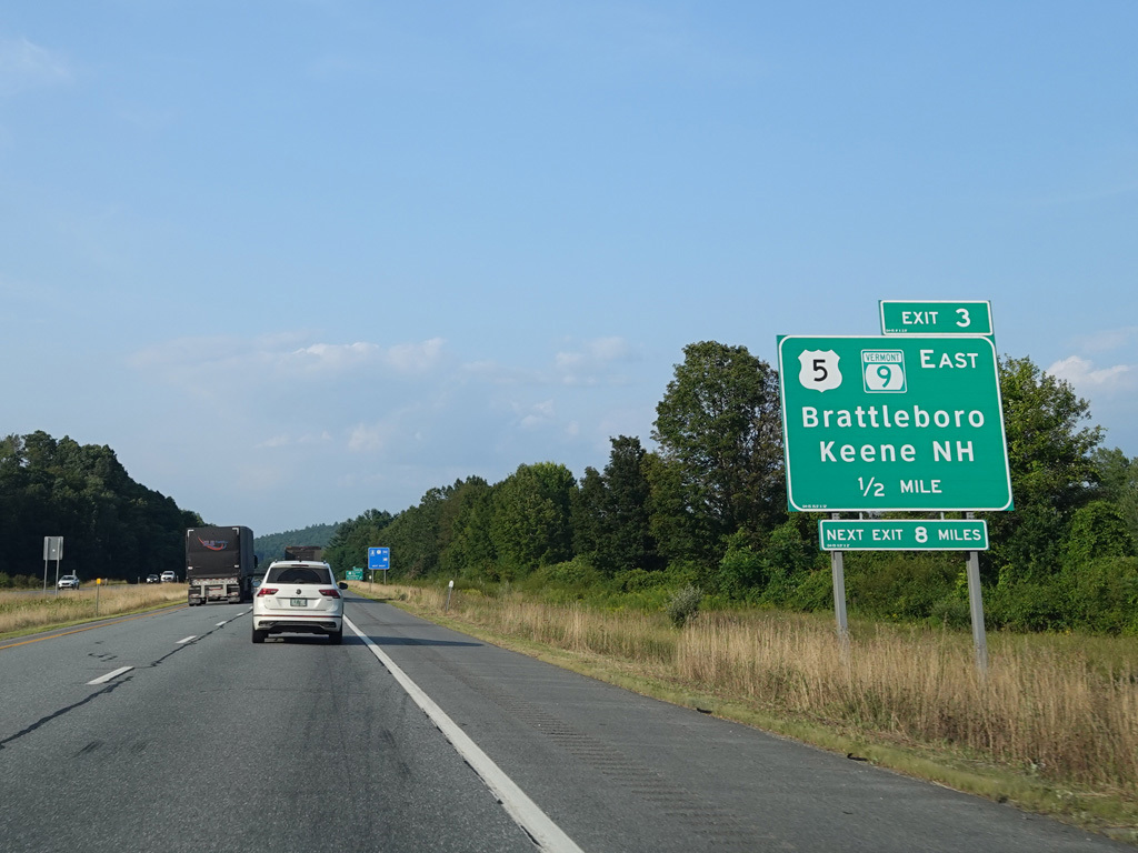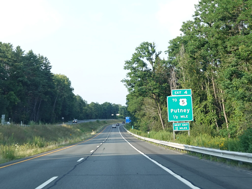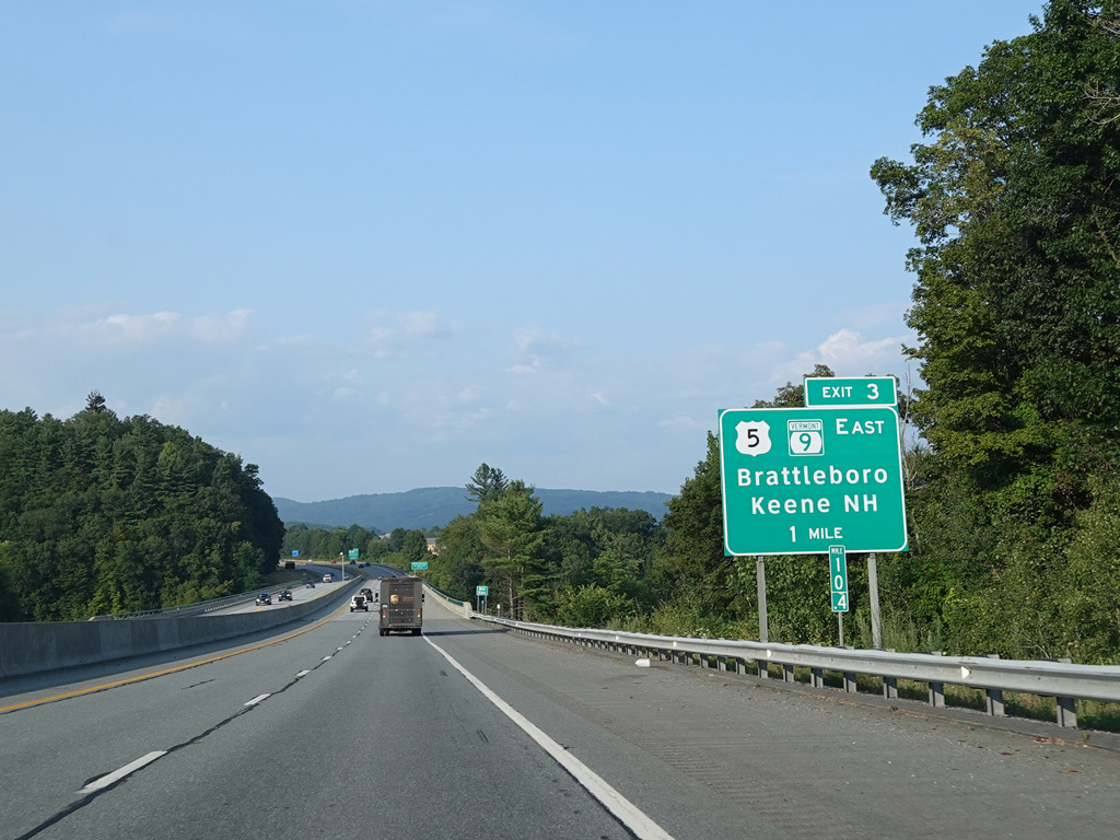Exit 3 is for Putney Road (US 5) and Chesterfield Road (VT 9) east.