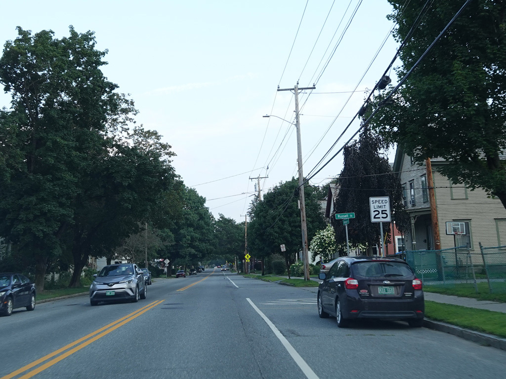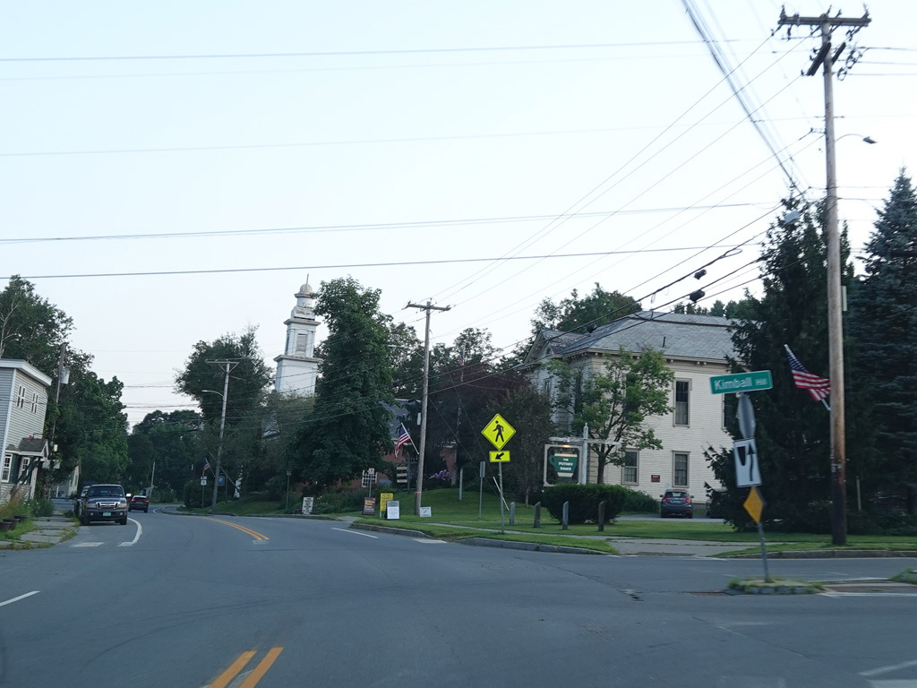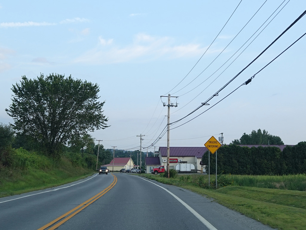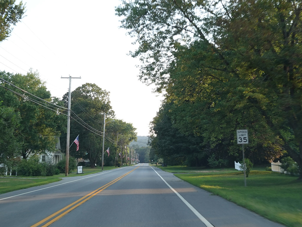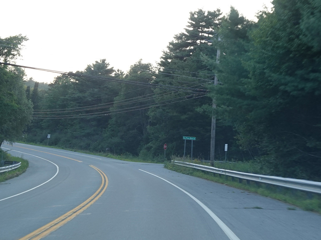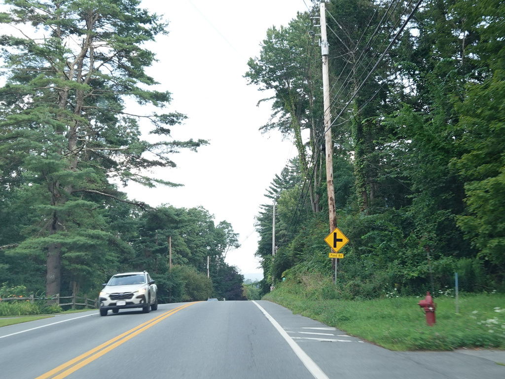 Coming into Putney, Bellows Falls Road changes names to become Main Street. The speed limit drops to 40 MPH and then to 30 MPH.