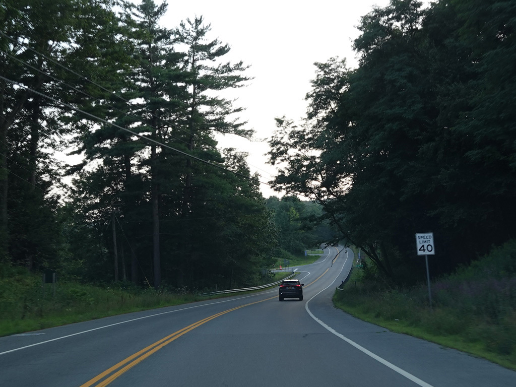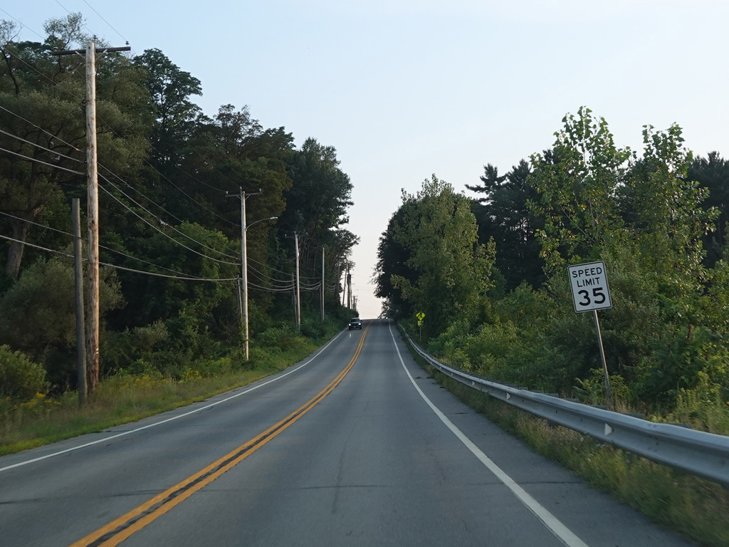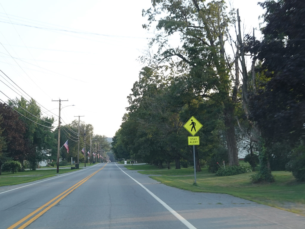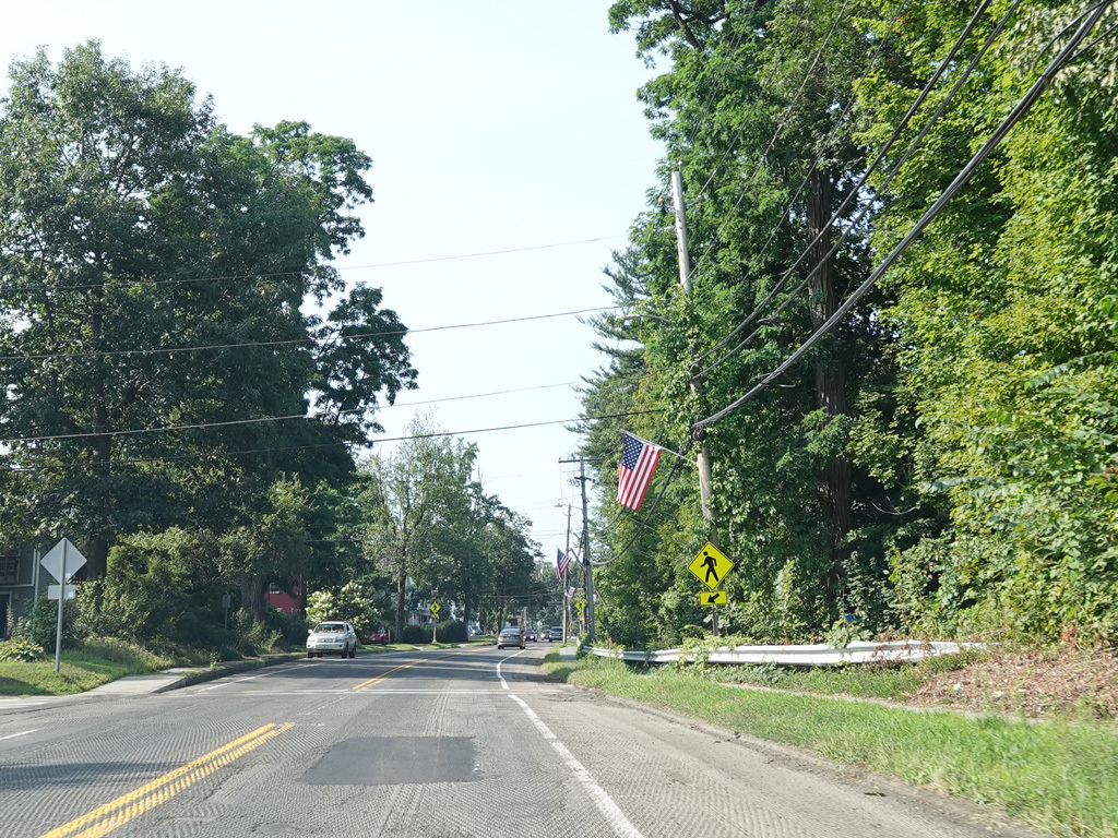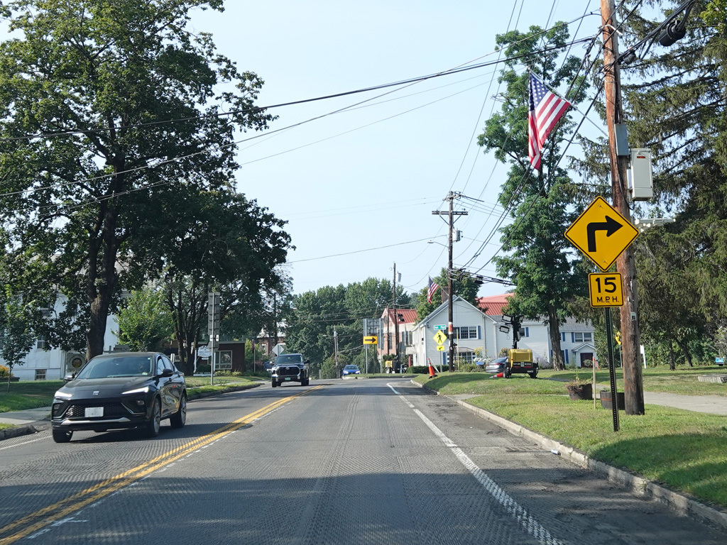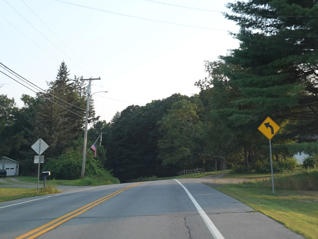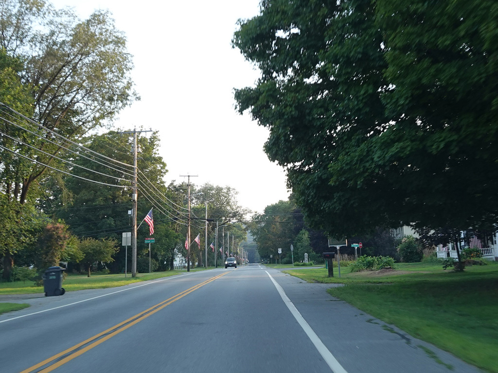 Coming into Putney, Bellows Falls Road changes names to become Main Street. The speed limit drops to 40 MPH and then to 30 MPH.