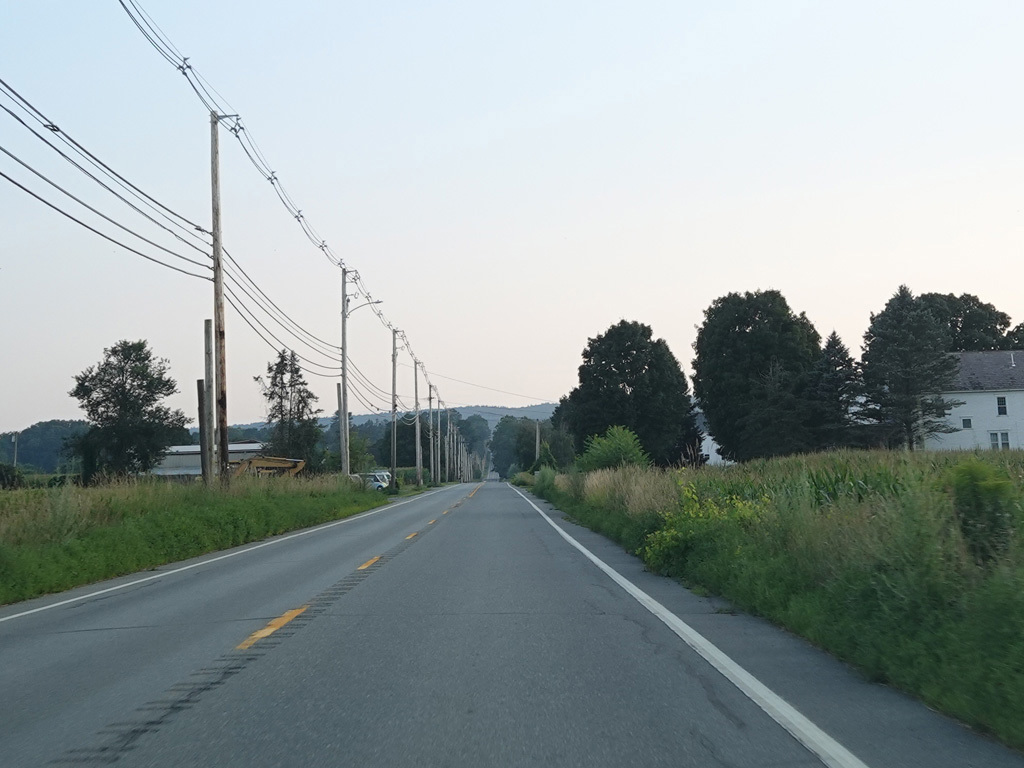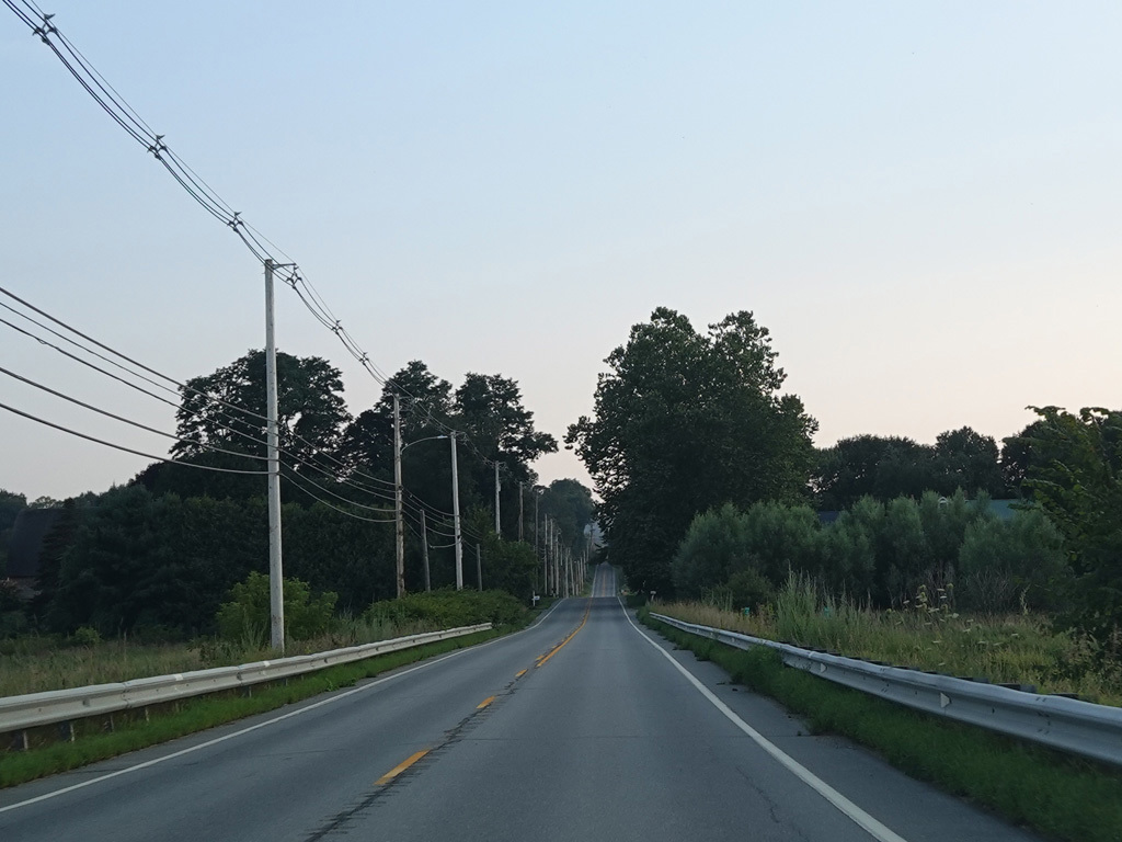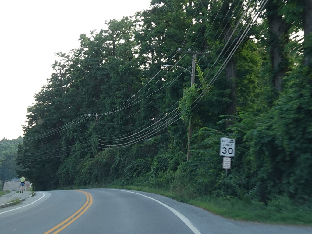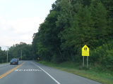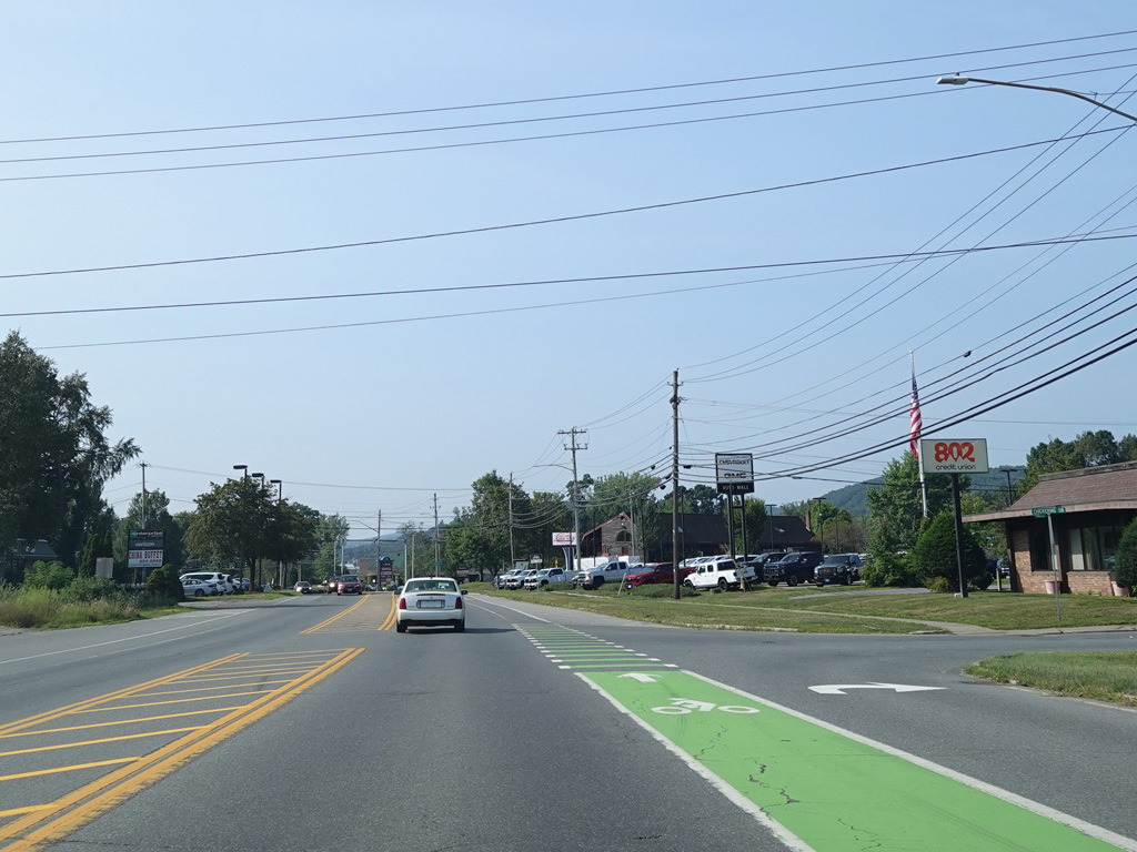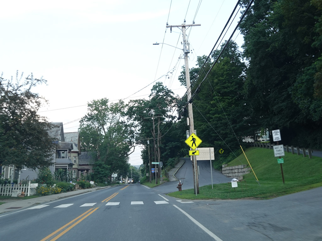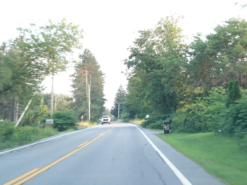 Coming into Putney, Bellows Falls Road changes names to become Main Street. The speed limit drops to 40 MPH and then to 30 MPH.