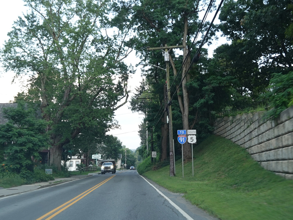 Bear right here for access to I-91. Continue straight ahead to stay on US 5.