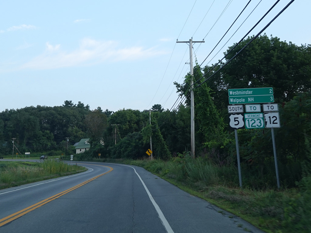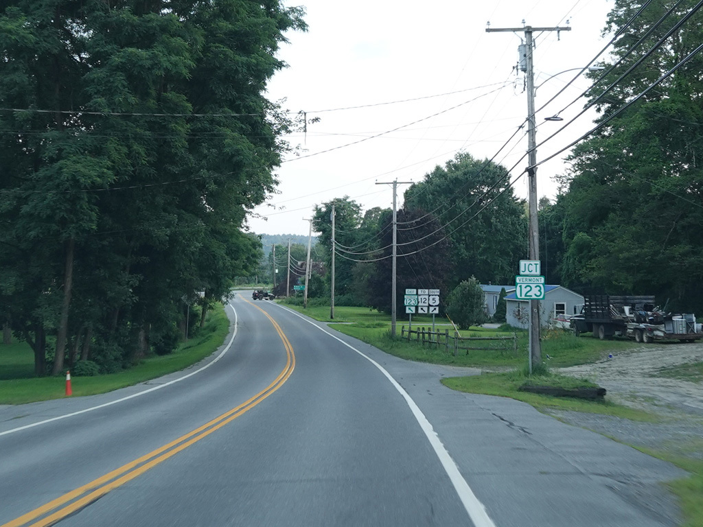 VT 123 begins on the left here. It leads to a bridge across the Connecticut River to New Hampshire, leading to NH 12.