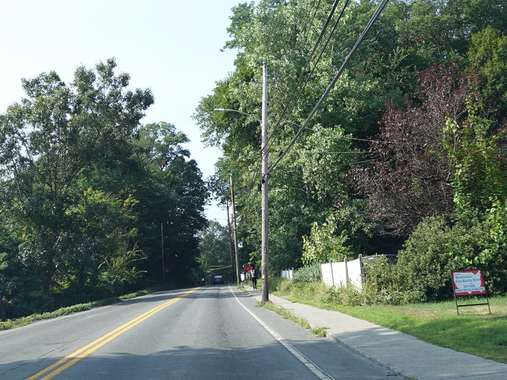 Rockingham Road runs south as a two-lane undivided road. Coming into Bellows Falls, it changes names to become Rockingham Street.