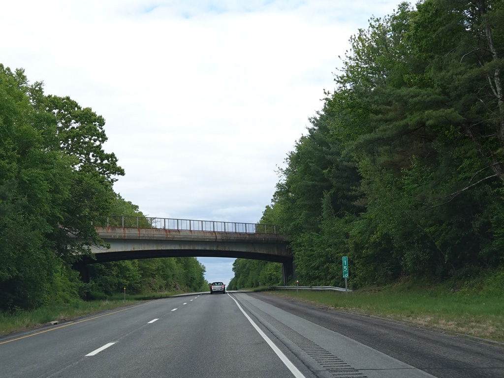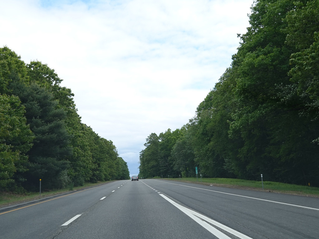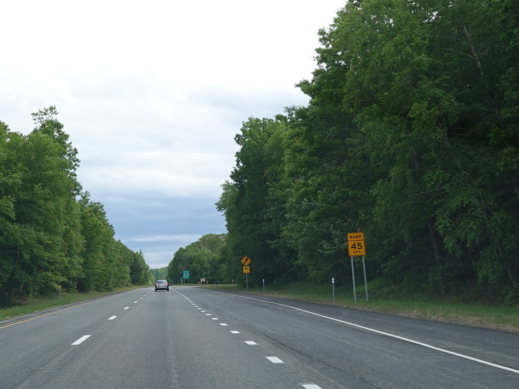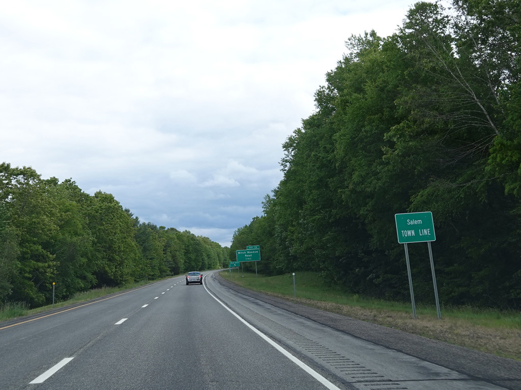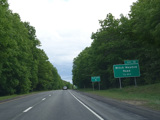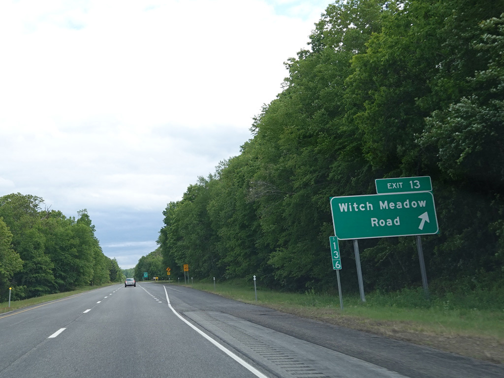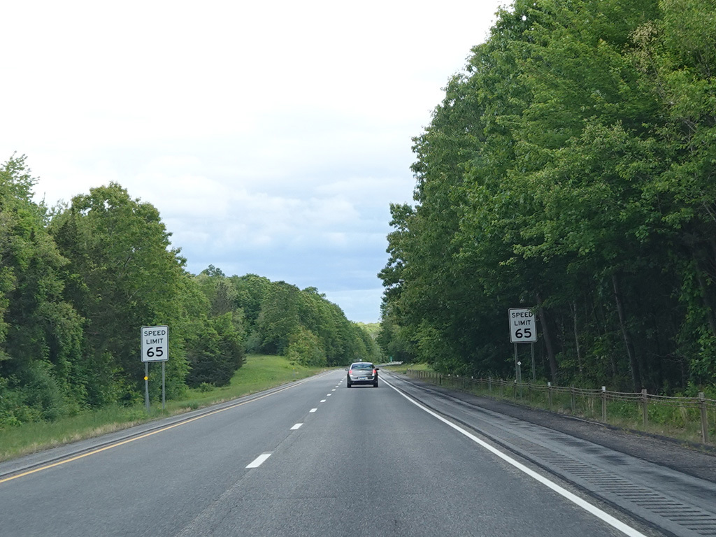 The expressway ends at a flasher and stop sign at East Haddam Road (CT 82). Turn left to go east or right to go west.