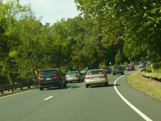 There is a long, curvy stretch with no exits between exit 28 and exit 27 in Greenwich.