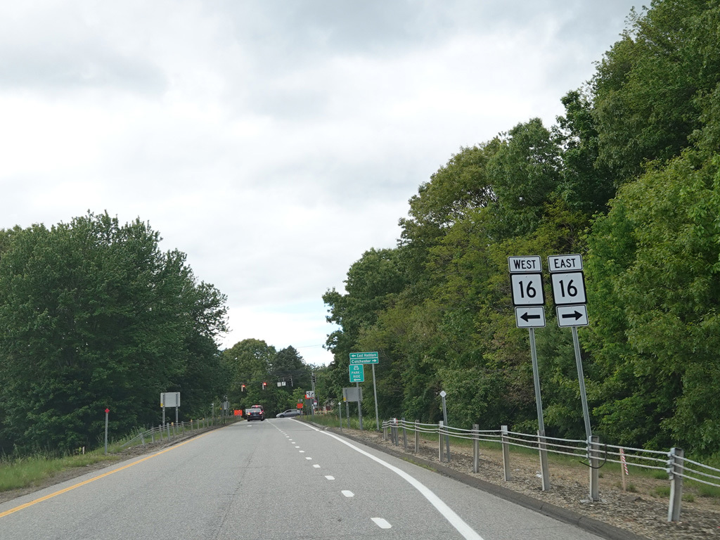 The ramp for exit 23 ends at a traffic light at Middletown Road (CT 2). Turn right to go east or left to go west.