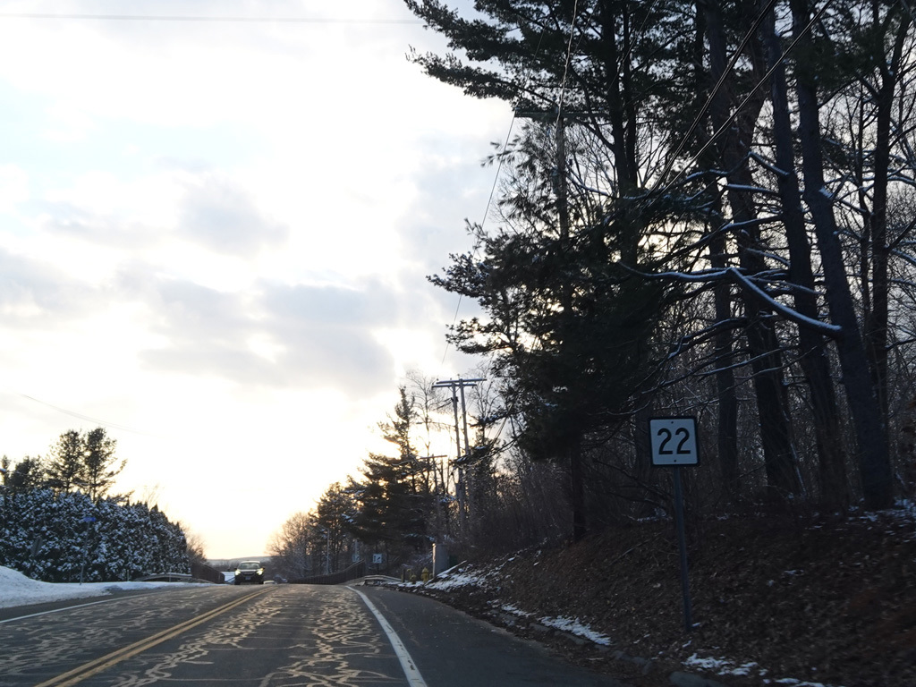 CT 22 is multiplexed with US 5 for a short distance in North Haven. Turn right for an entrance to I-91. Continue straight ahead for access to the Wilbur Cross Parkway (CT 15).