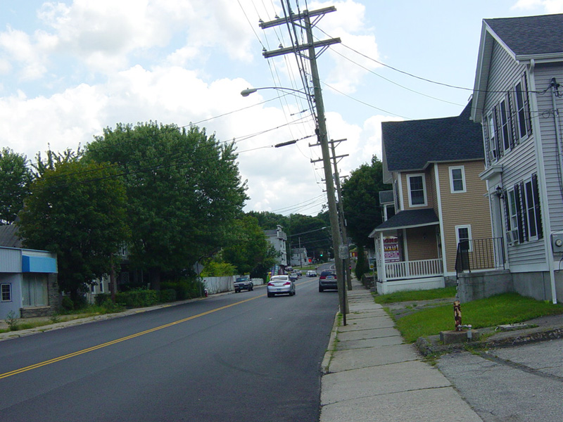 Cherry Street splits off to the right to become a local street. Bear left to stay on CT 63.