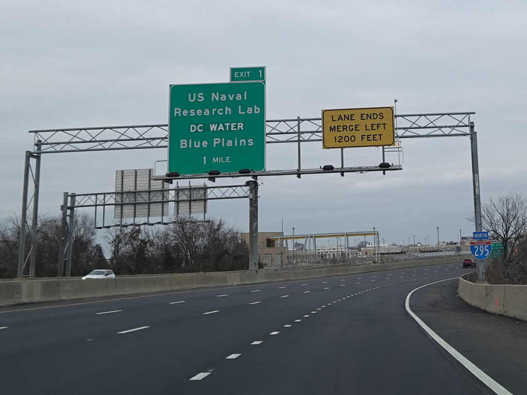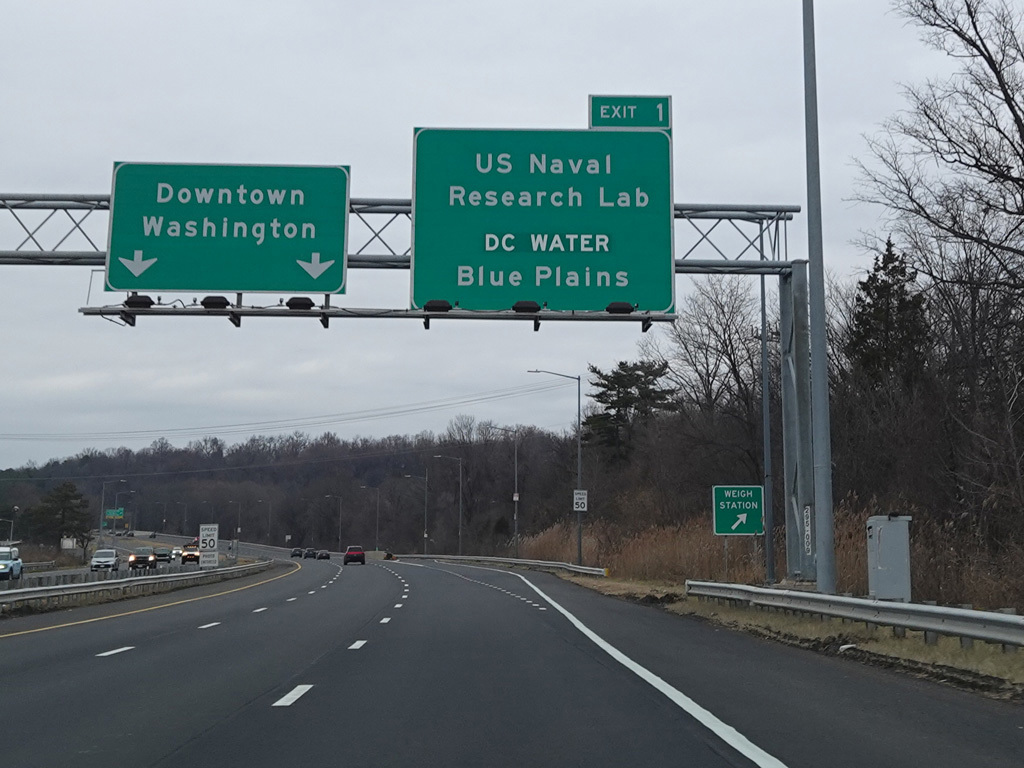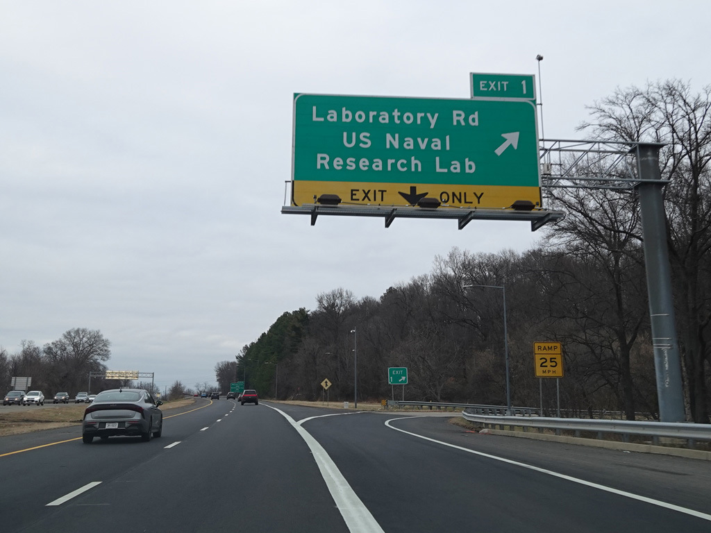 Welcome to Washington, DC! There is no welcome signage entering the District of Columbia from Maryland. Exit 1 is for Laboratory Road.