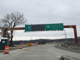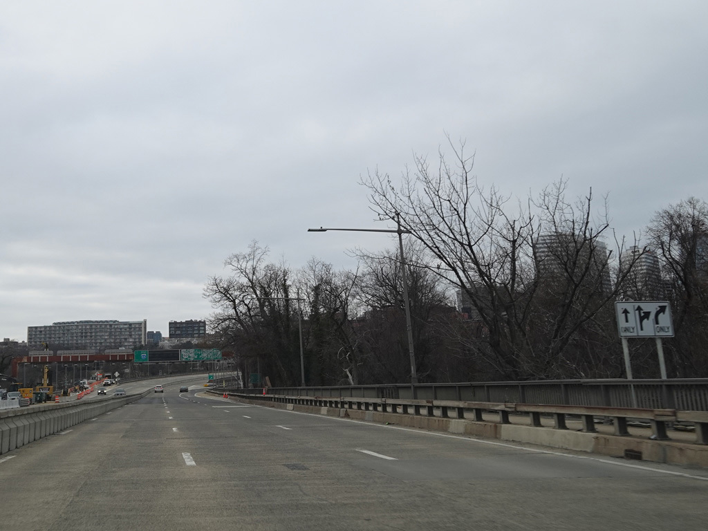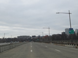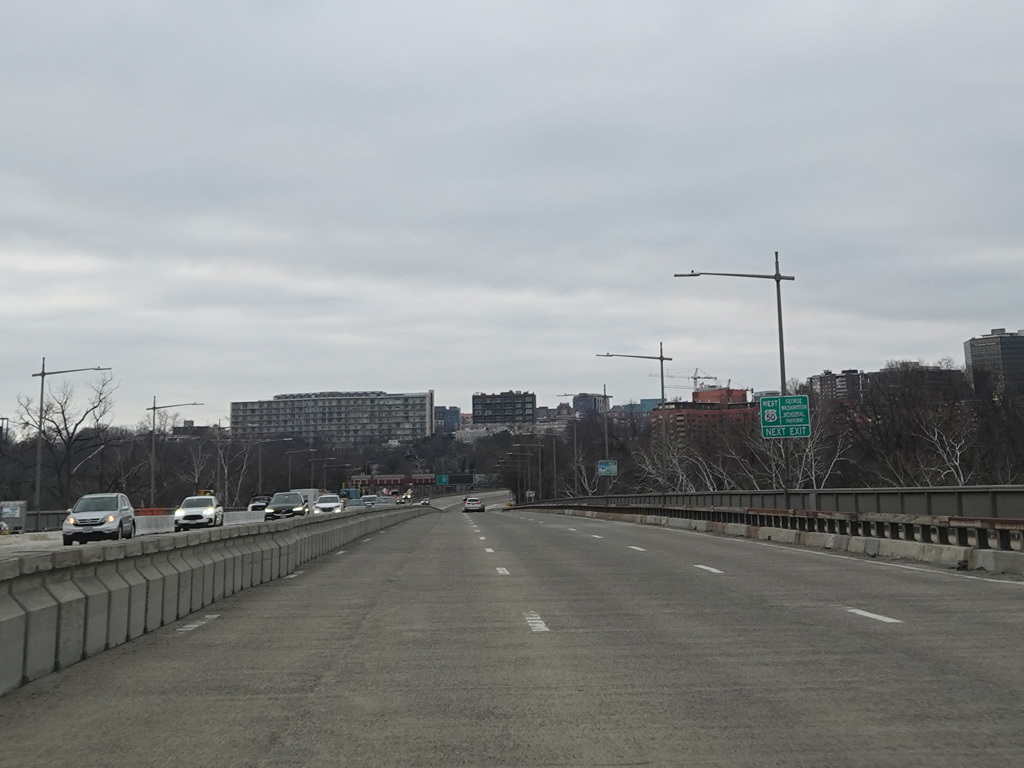 The Theodore Roosevelt Bridge crosses the Potomac River to Virginia. On the other side, there is an exit for Arlington Boulevard (US 50) and the George Washington Memorial Parkway. I-66 continues straight ahead into Virginia.