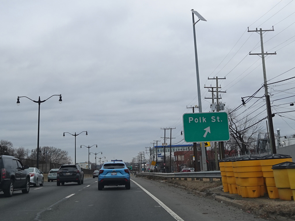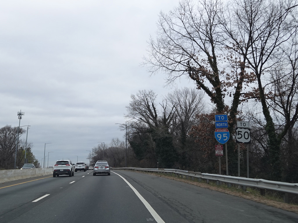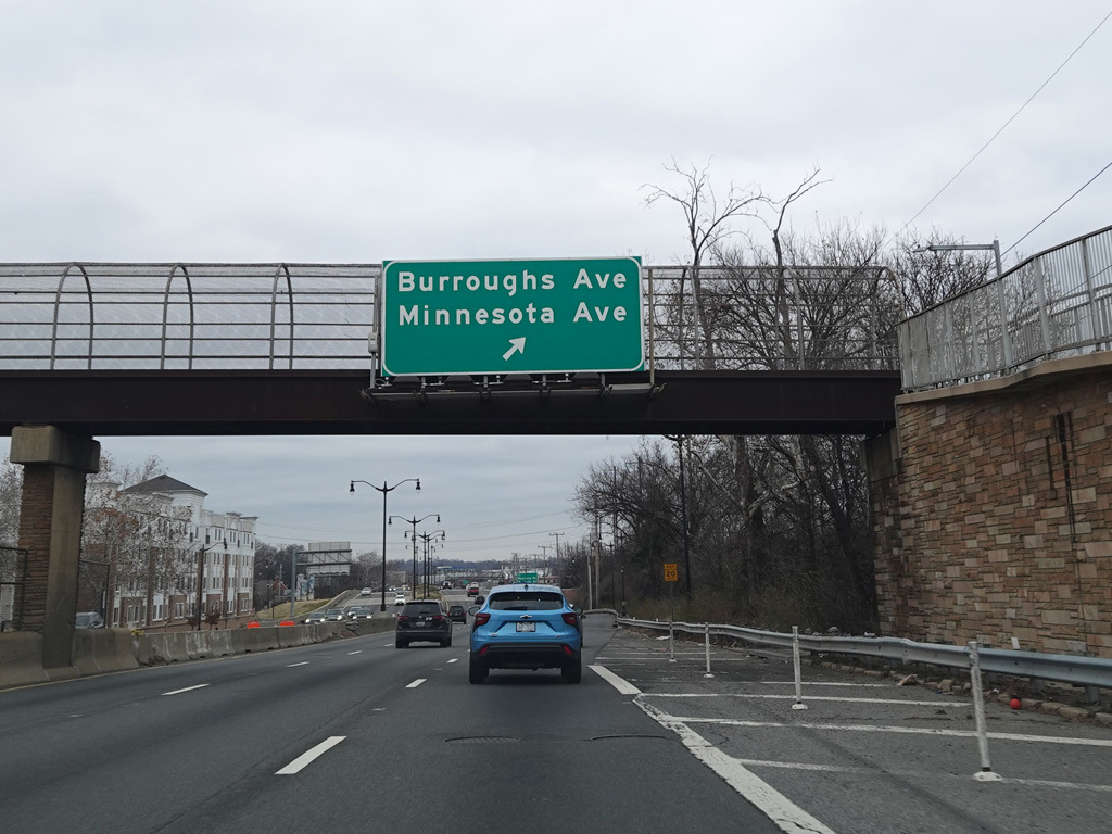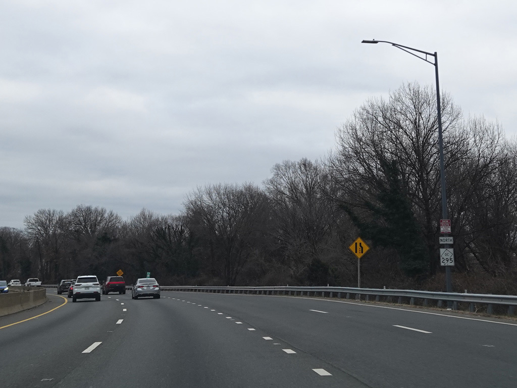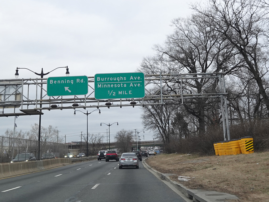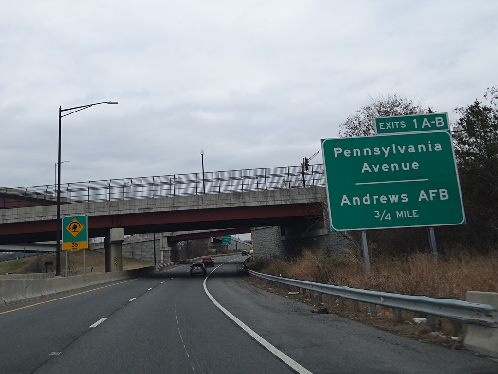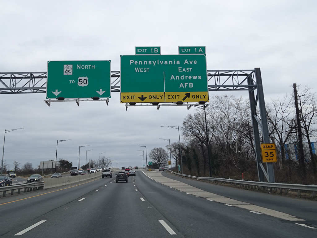 The Anacostia Freeway changes designation from I-295 to DC 295 at its interchange with the Southeast Freeway (I-695). Exits 1A-B are for Pennsylvania. These are the only numbered exits on DC 295.