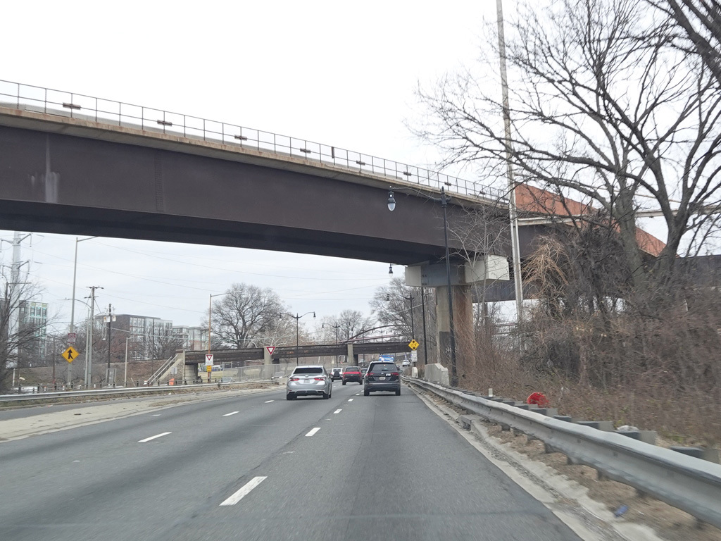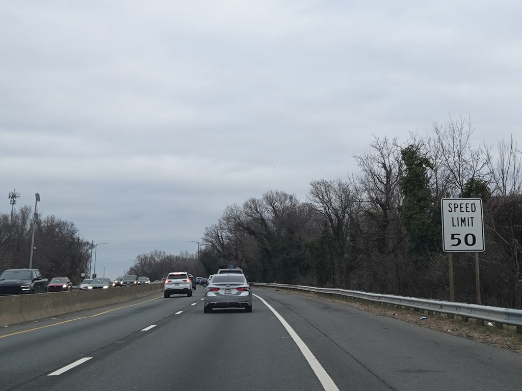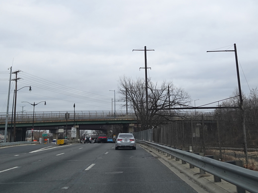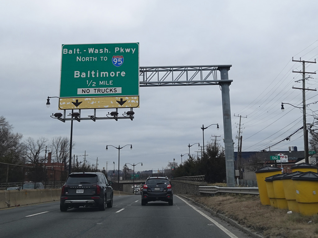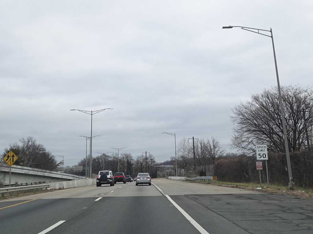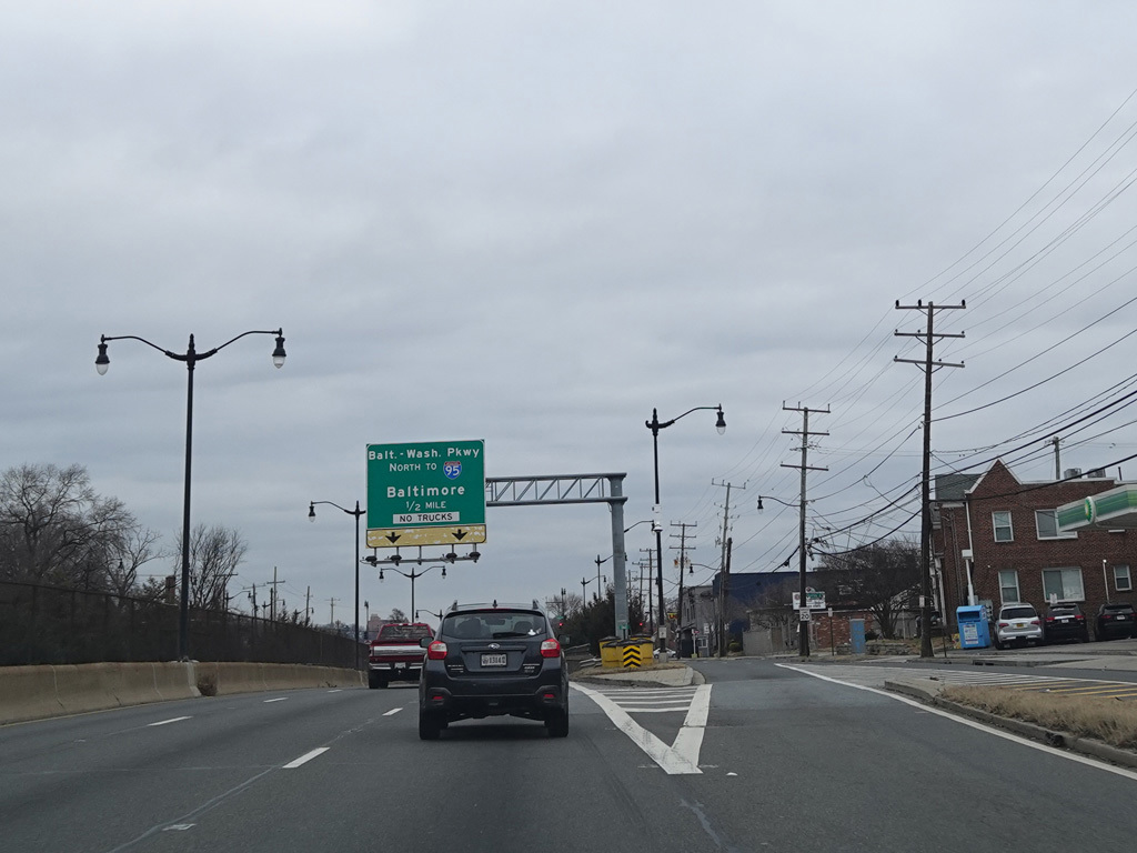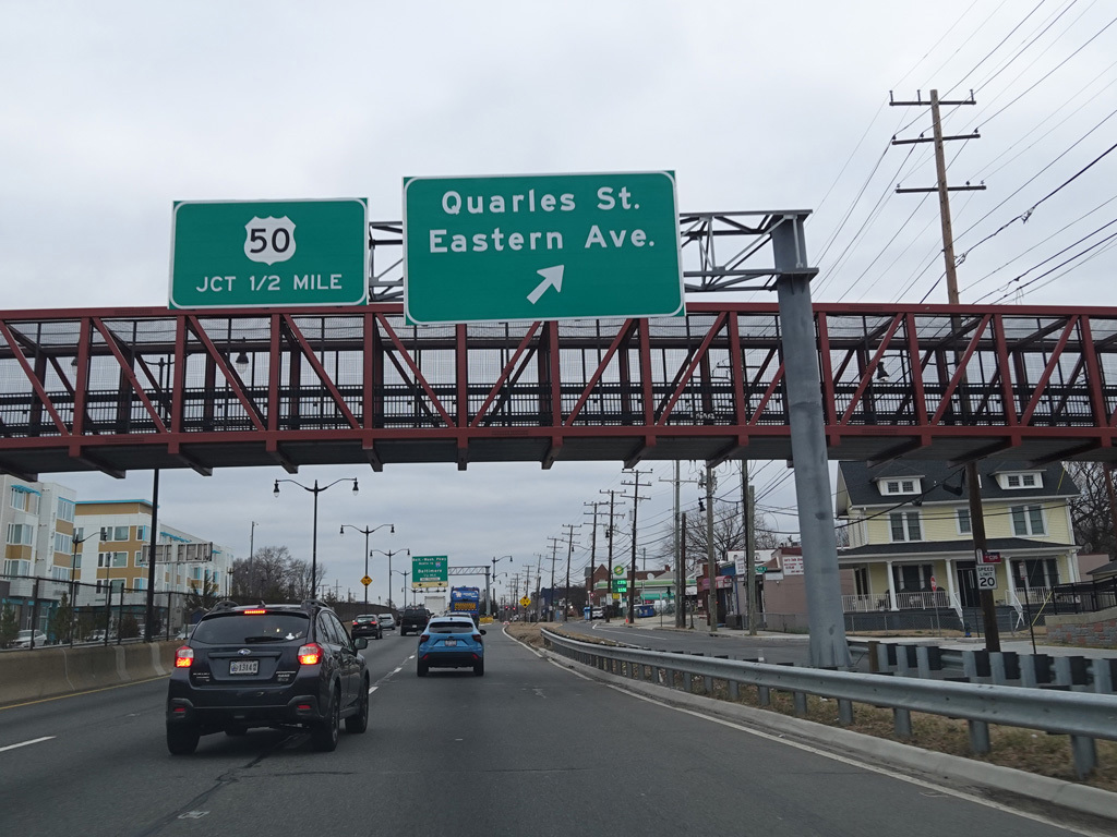 The Anacostia Freeway becomes Kenilworth Avenue (MD 201) at the overpass for Eastern Avenue as it leaves the District of Columbia and enters Maryland. There is advance signage for the split for the Baltimore-Washington Parkway (MD 295), which begins just ahead.