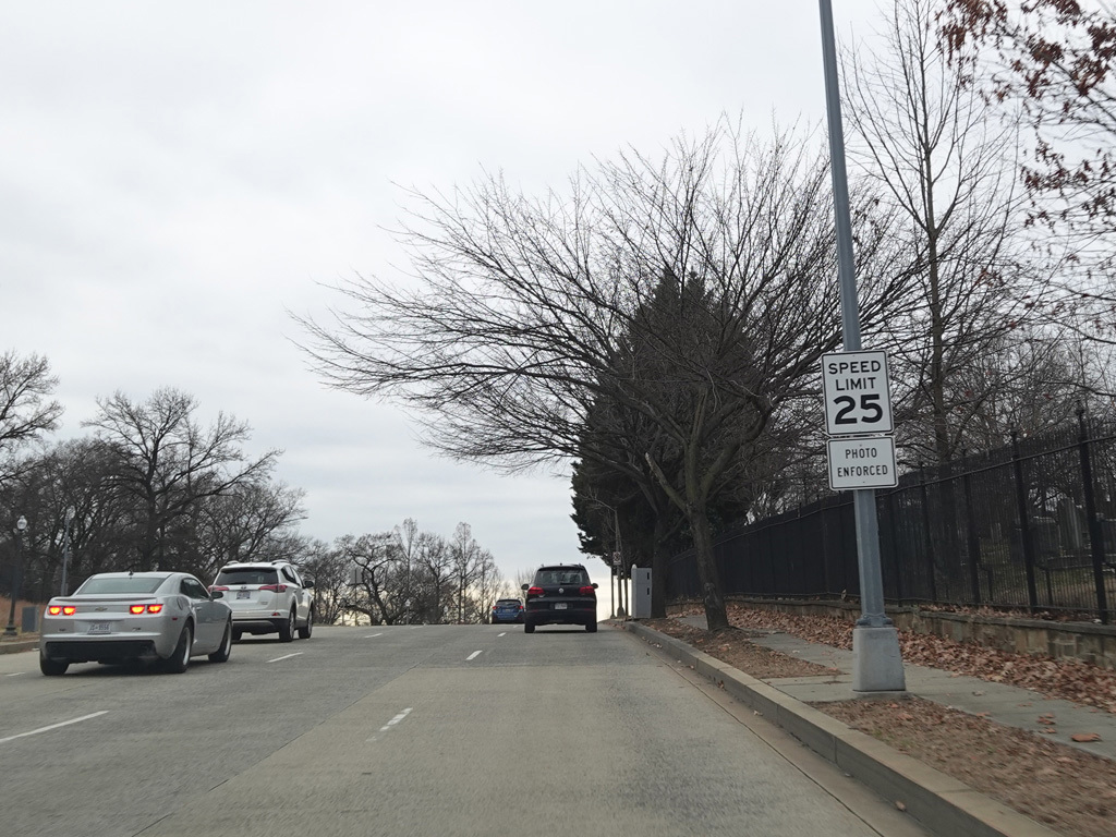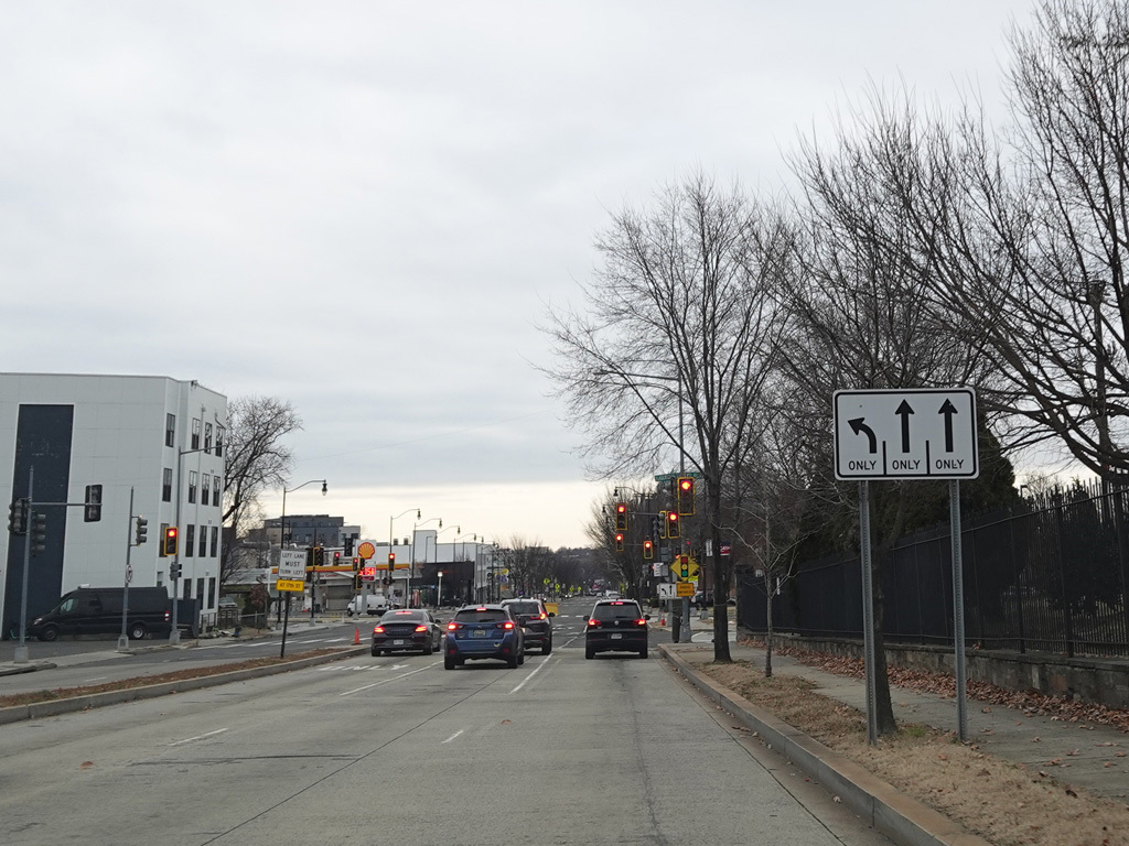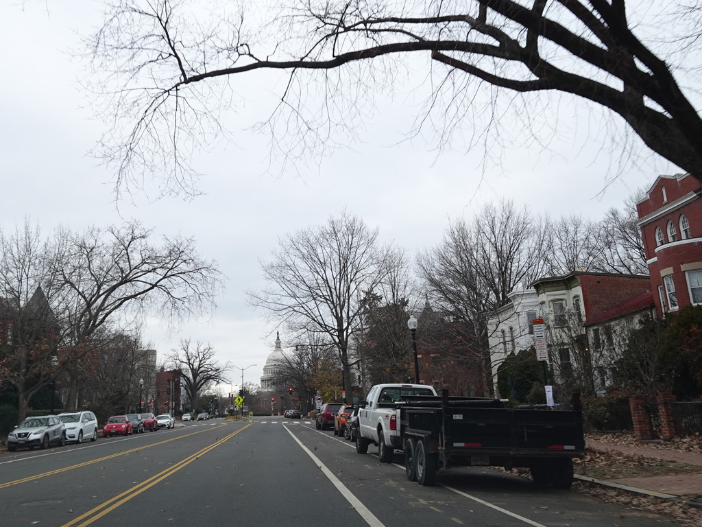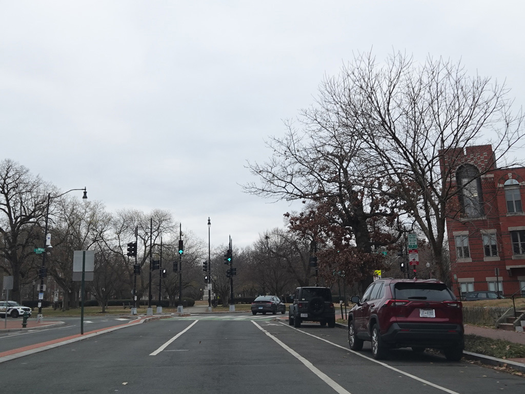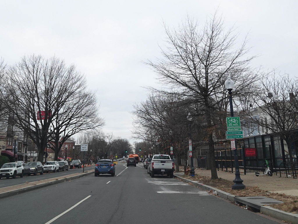 Maryland Avenue is interrupted at Stanton Park. All vehicles are forced onto C Street NE.