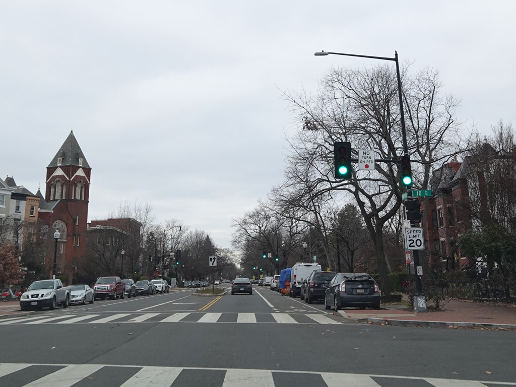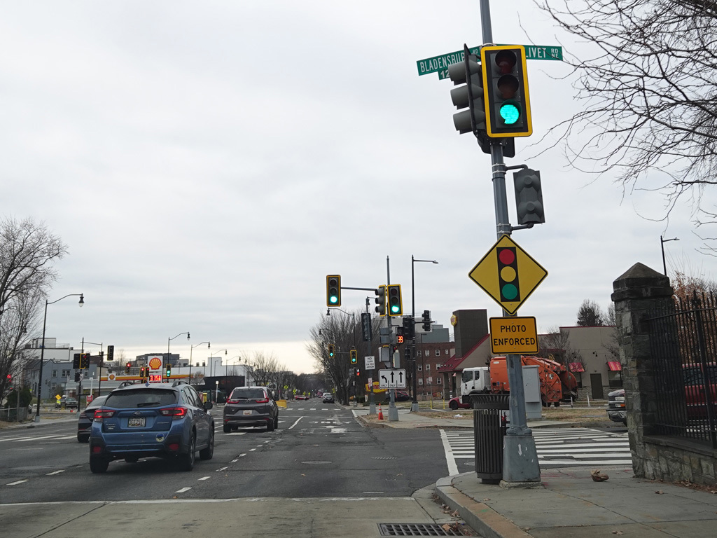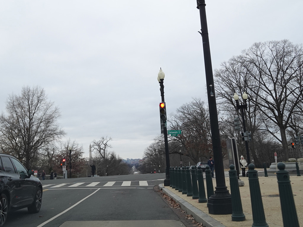 Maryland Avenue ends here at this traffic light. Continue straight ahead onto Constitution Avenue to stay on Alternate US 1.