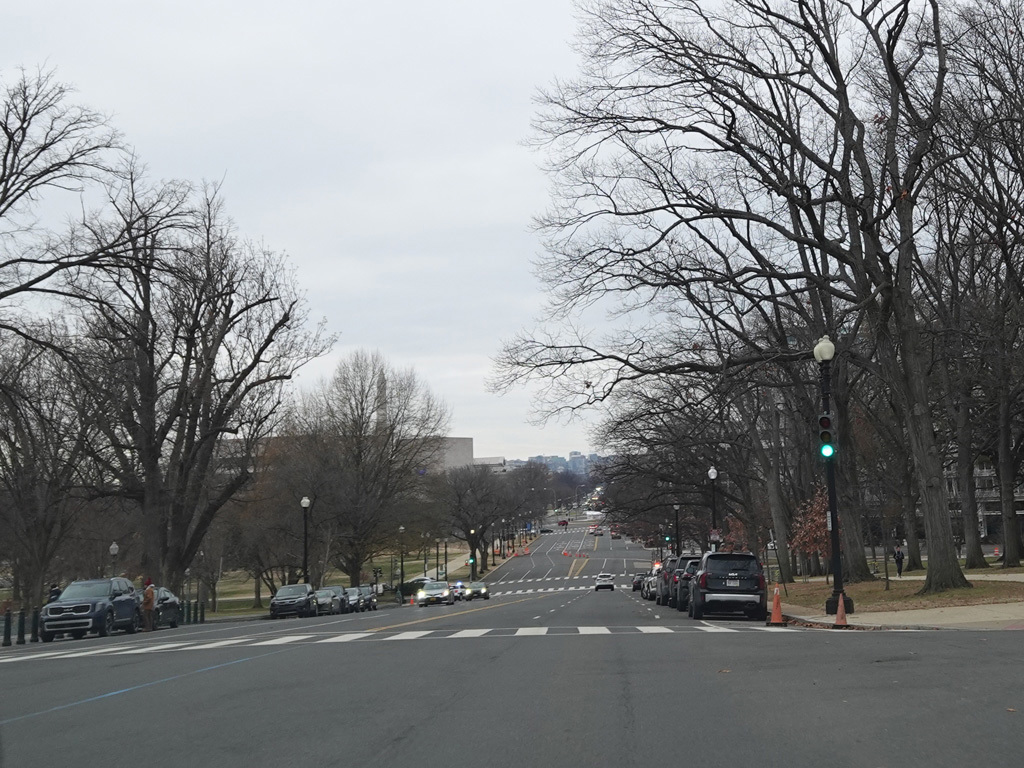 Maryland Avenue continues to the southwest. The United States Capitol is visible straight ahead.