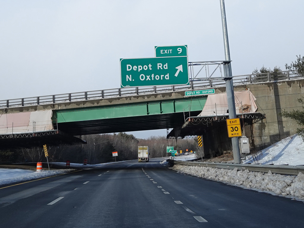 Exits 11A-B are for Washington Street (US 20) and MA 146.