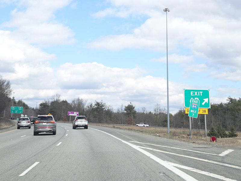I-84 ends here at the Massachusetts Turnpike (I-90). Bear right to go east or bear left to go west.
