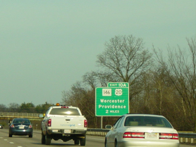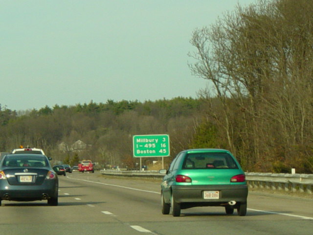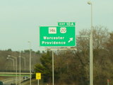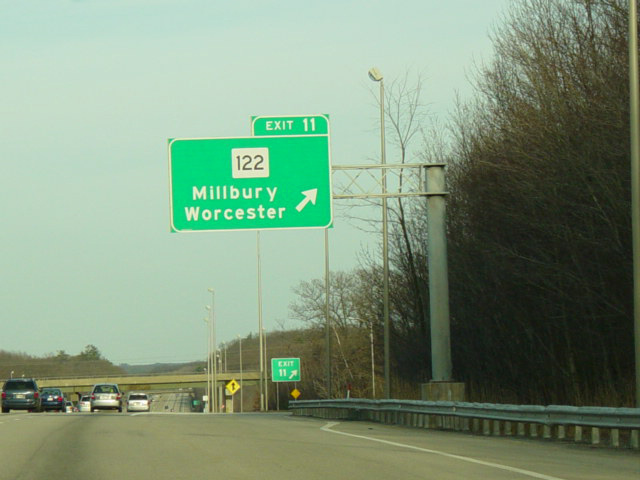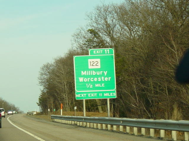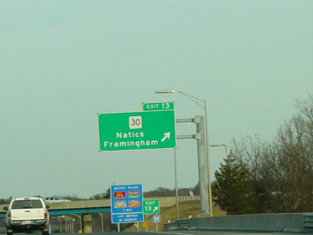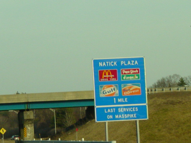 These pictures show the Massachusetts Turnpike as it appeared when it still used sequential exit numbers. It has since been converted to a milepost system. All of the signs have been replaced.