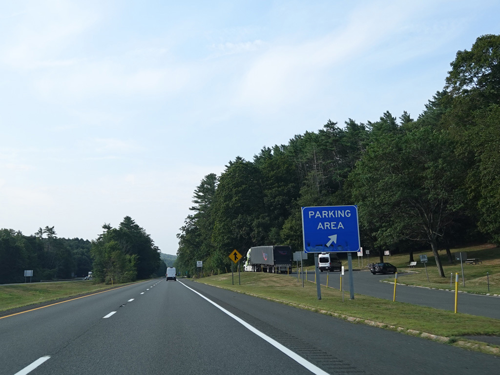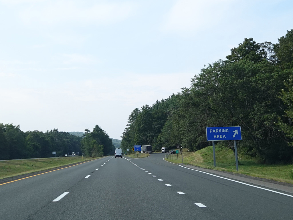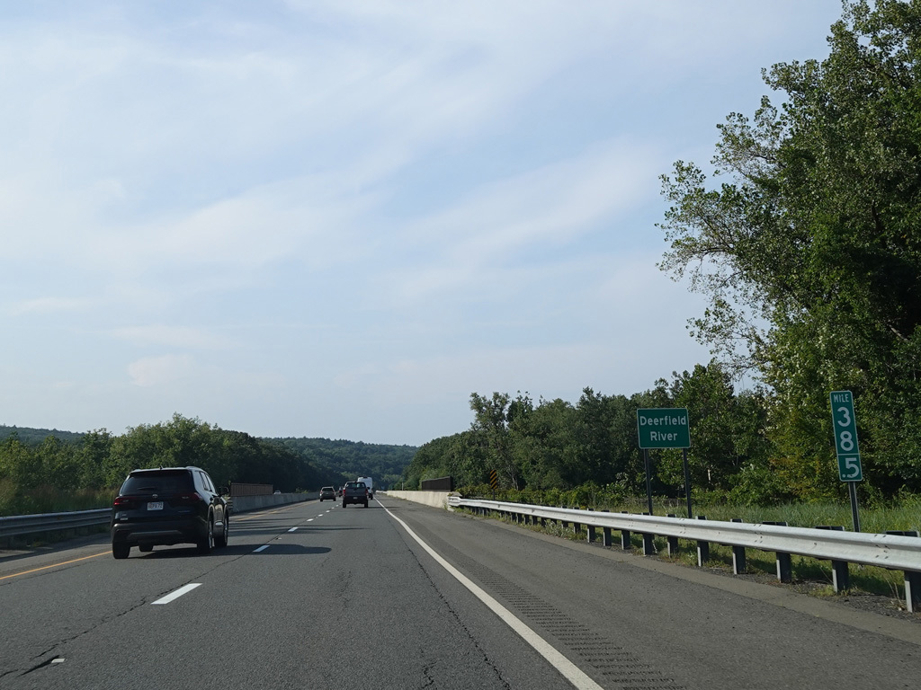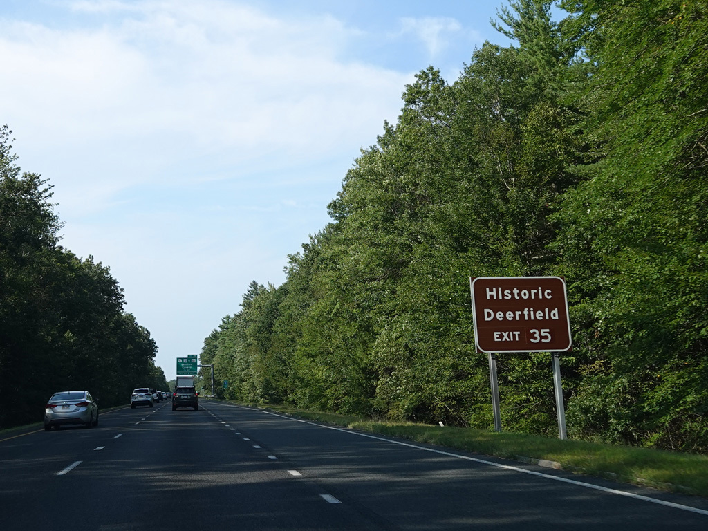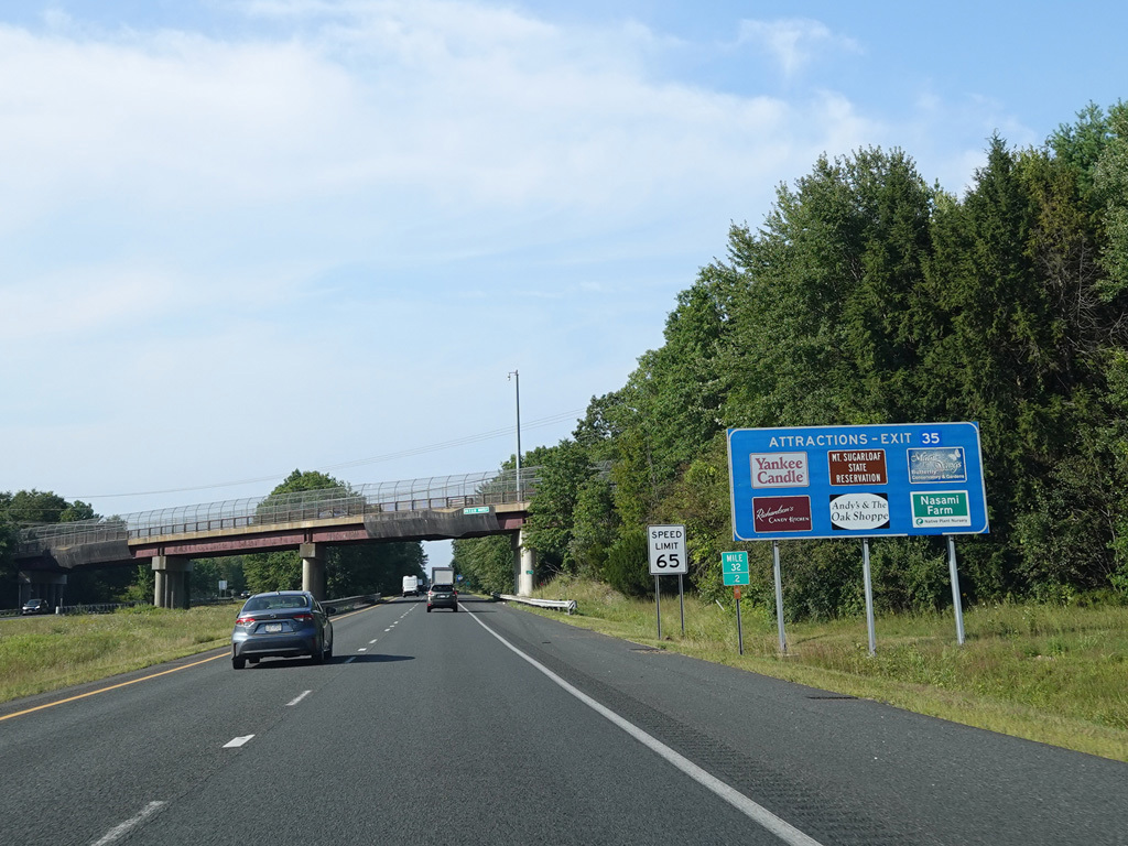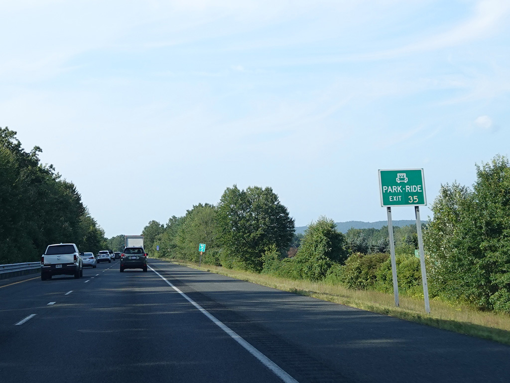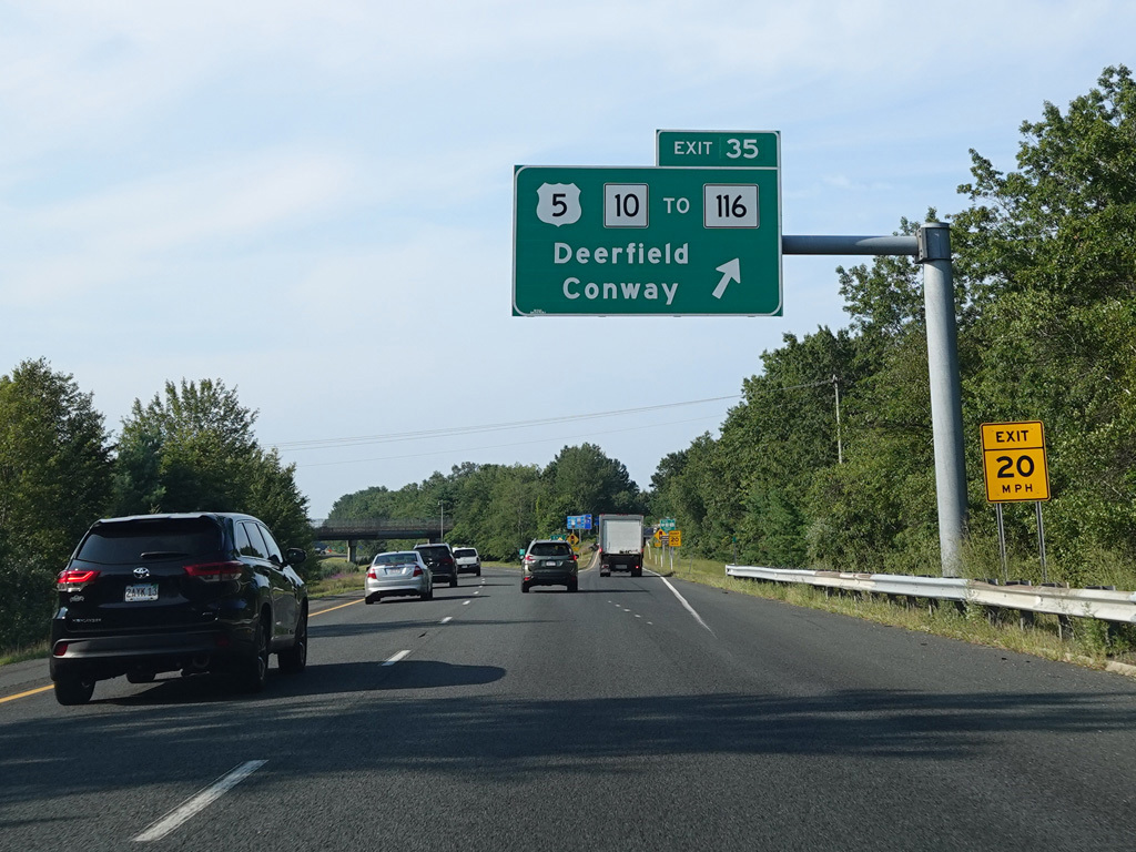 Exit 35 is for State Road (US 5/MA 10) and Sunderland Road (MA 116). There is a parking area just before the exit.