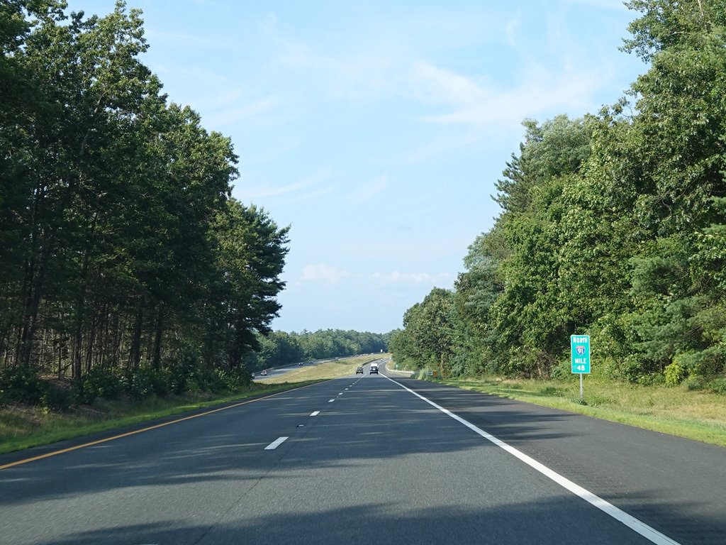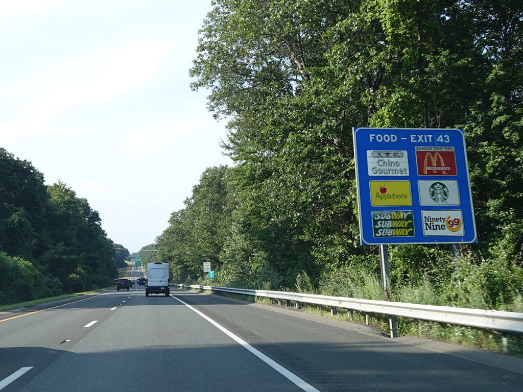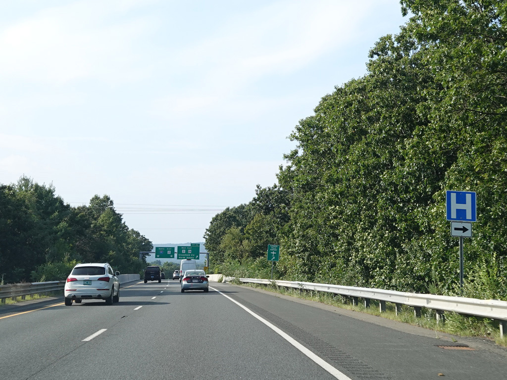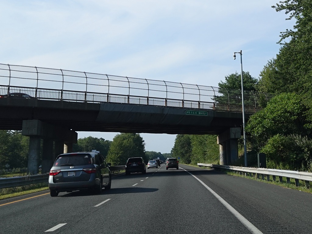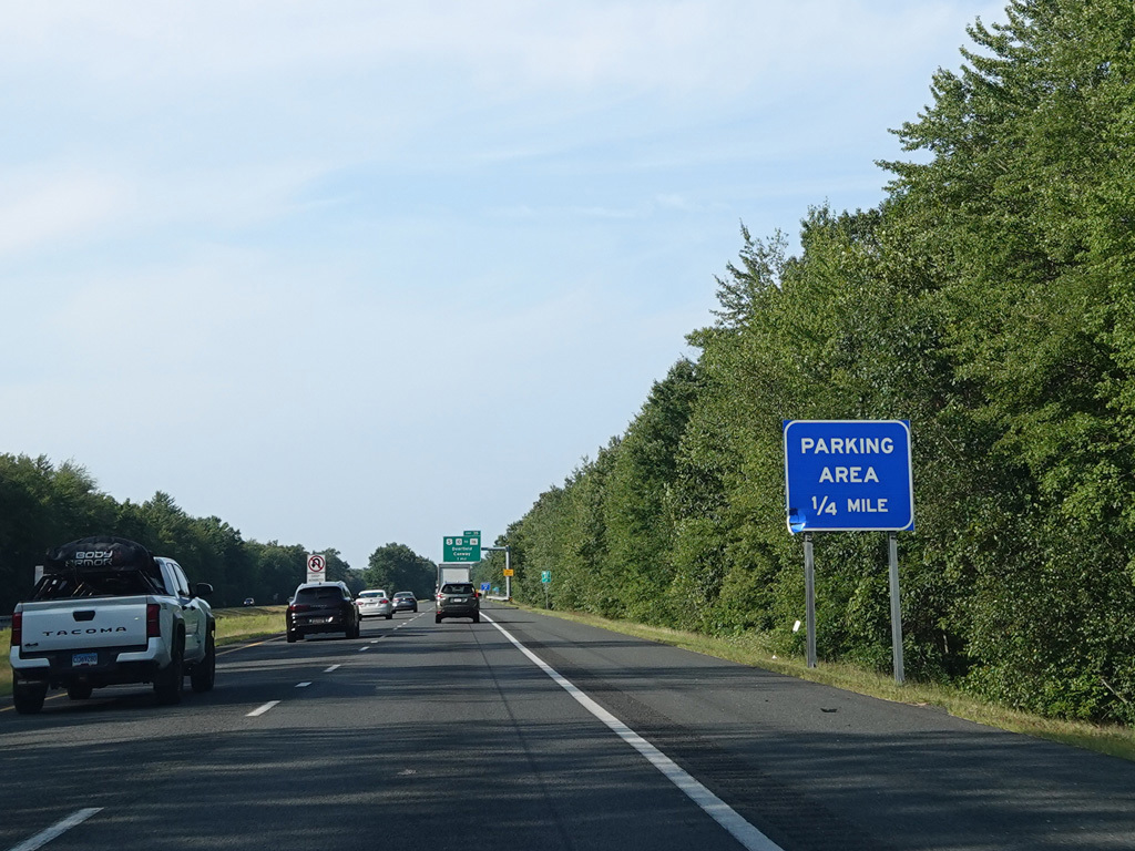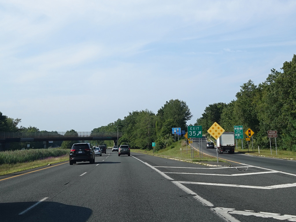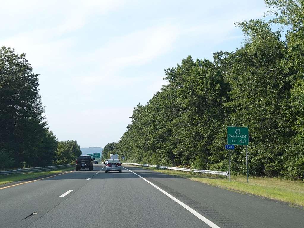 Exit 35 is for State Road (US 5/MA 10) and Sunderland Road (MA 116). There is a parking area just before the exit.