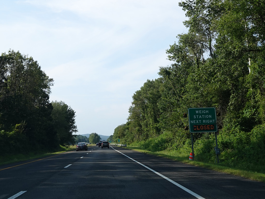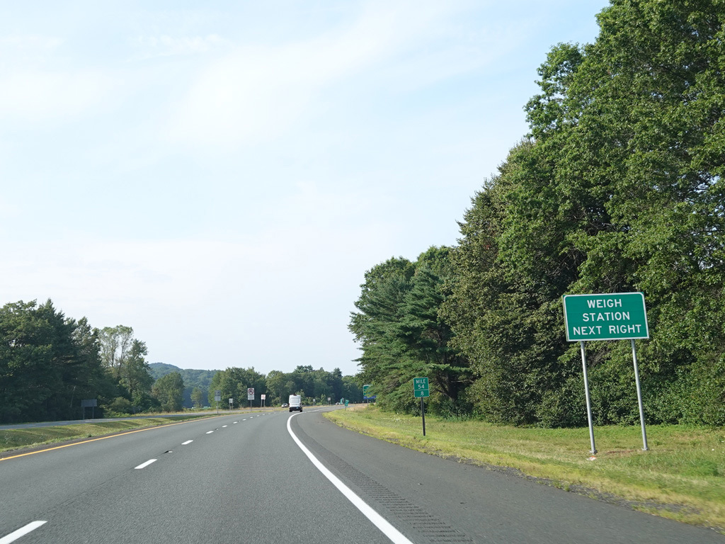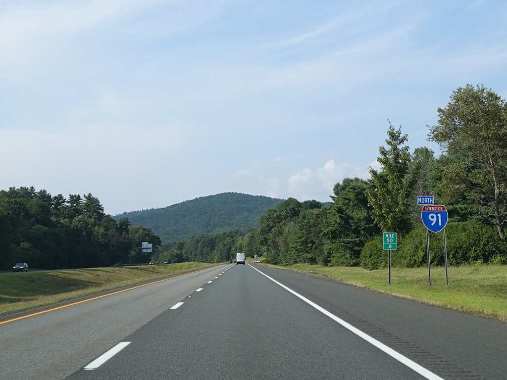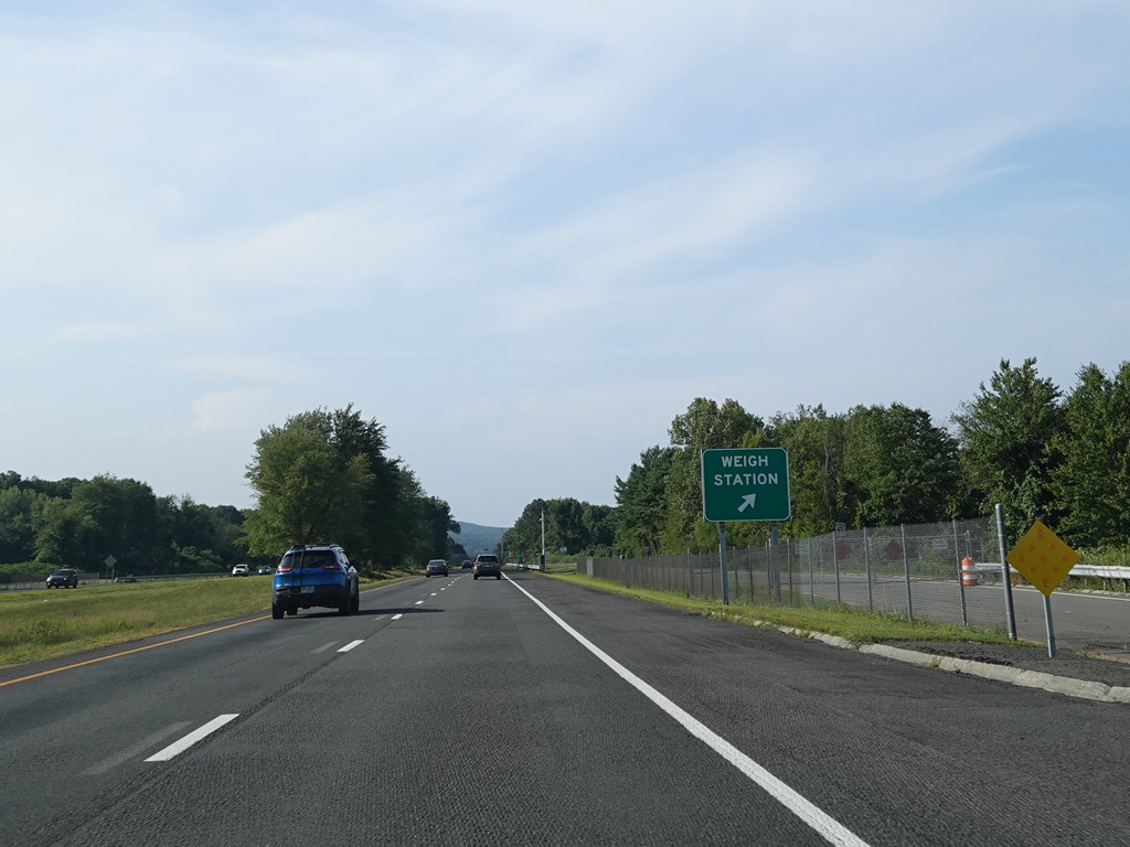 I-91 continues north into Vermont. There is some advance signage in Massachusetts for a weigh station that is located just over the state line.