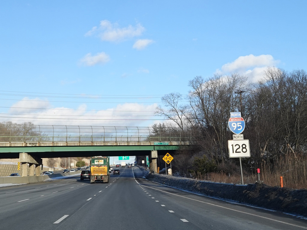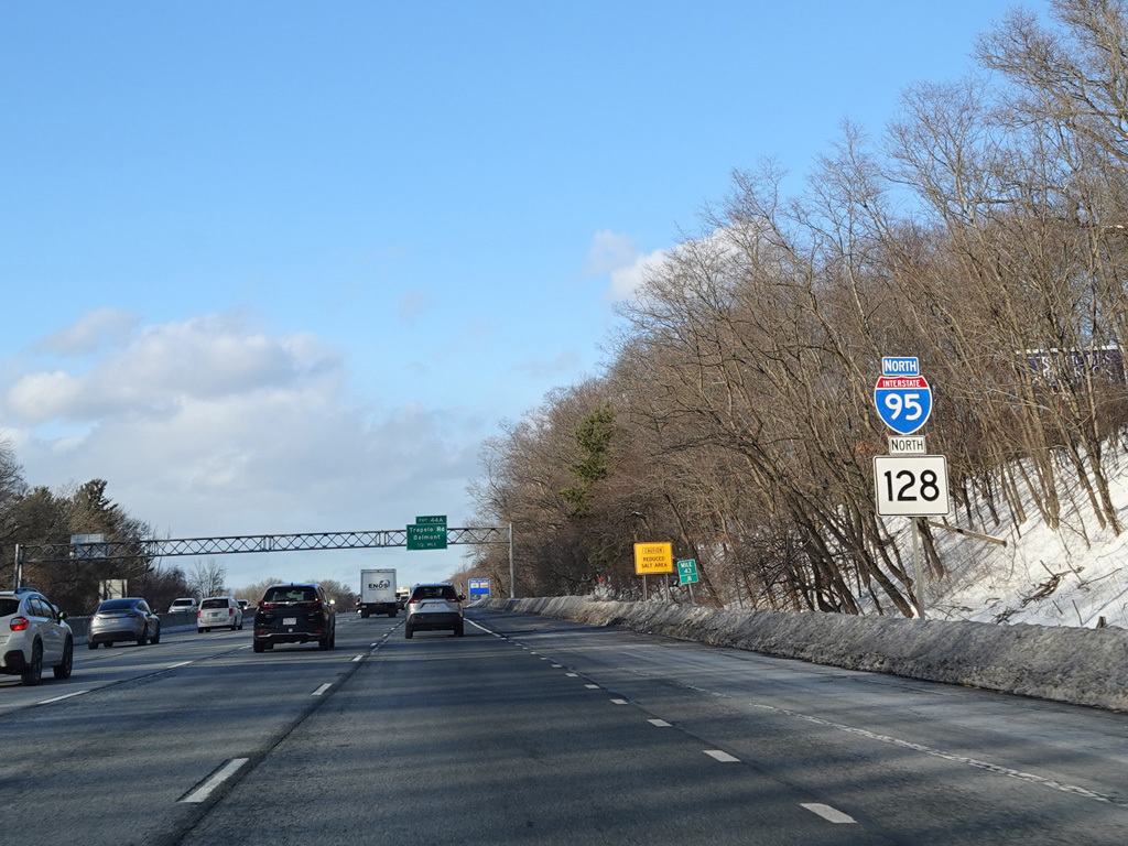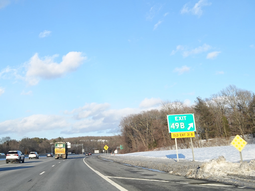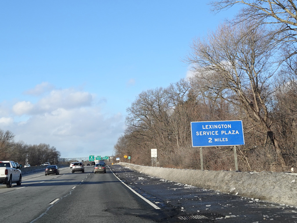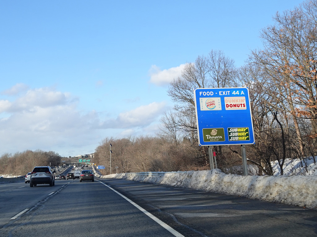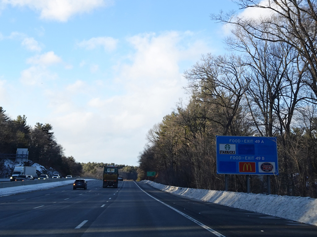 Exits 46A-B are for Marrett Road (MA 2A). The Lexington Service Plaza is also accessed through this ramp.