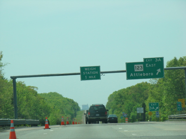 Exits 2B-A are for Newport Avenue (MA 1A) and US 1. Exit 1 is for Broadway (US 1) south. It is the last exit in Massachusetts. I-95 continues straight ahead into Rhode Island.