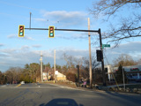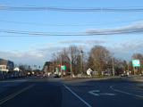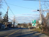 Boston Road begins on the left at a traffic light and provides access to I-495. Carlisle Road begins on the right and runs south to MA 225.