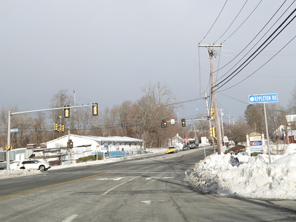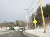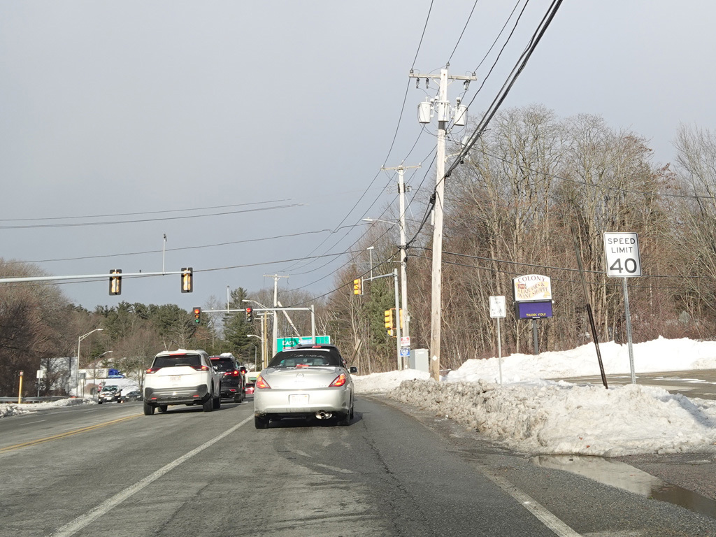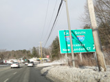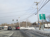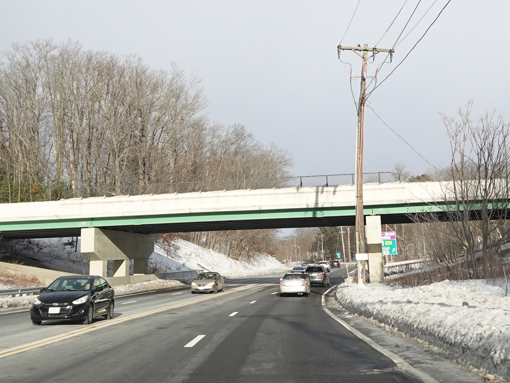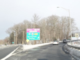 There is an entrance to the Massachusetts Turnpike (I-90) on the right.