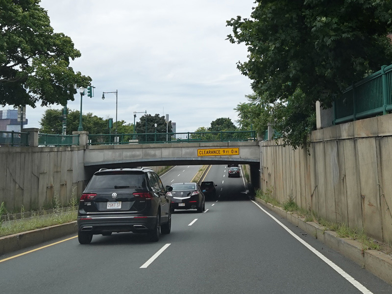 There is a grade-separated interchange at Massachusetts Avenue (MA 2A). Memorial Drive changes designation here to become US 3, although there is no signage to indicate so.