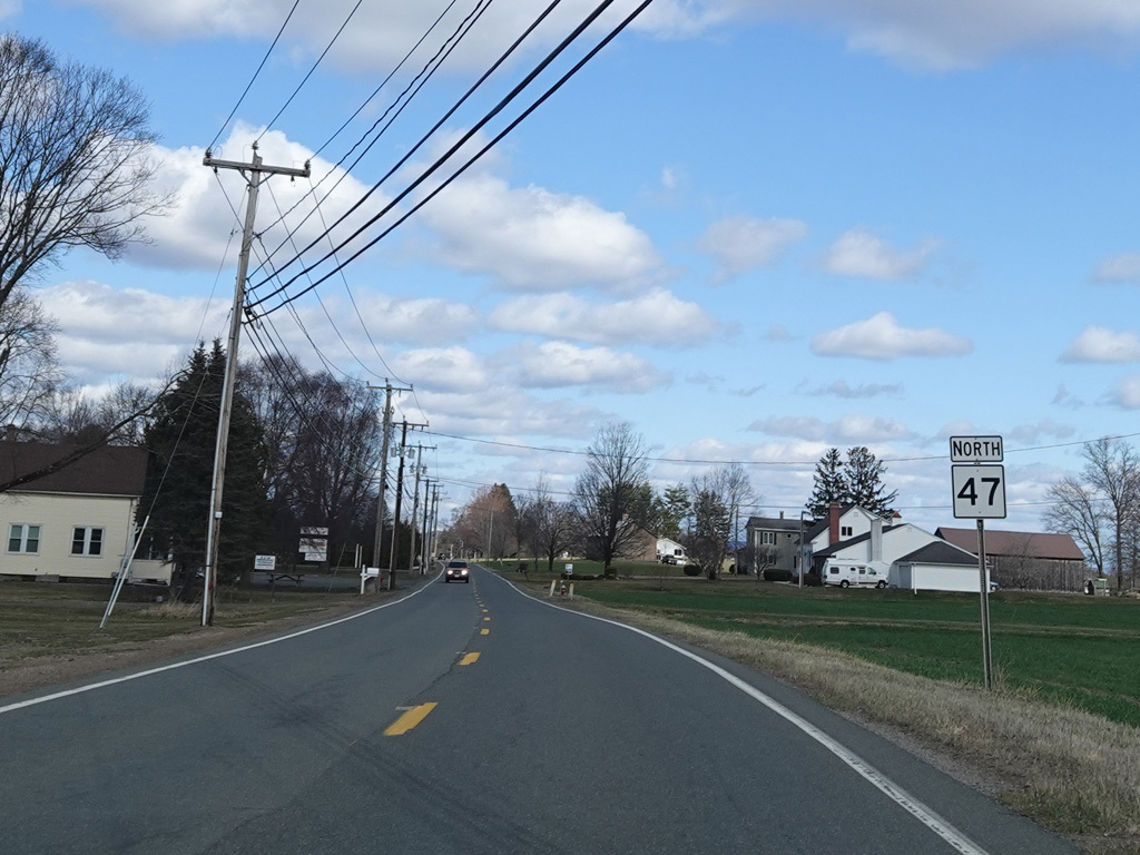 Lawrence Plain Road ends at Bay Road. Continue straight ahead to stay on MA 47.