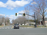 There is a traffic light at Russell Street (MA 9). Turn right to go east or left to go west.