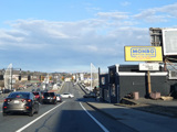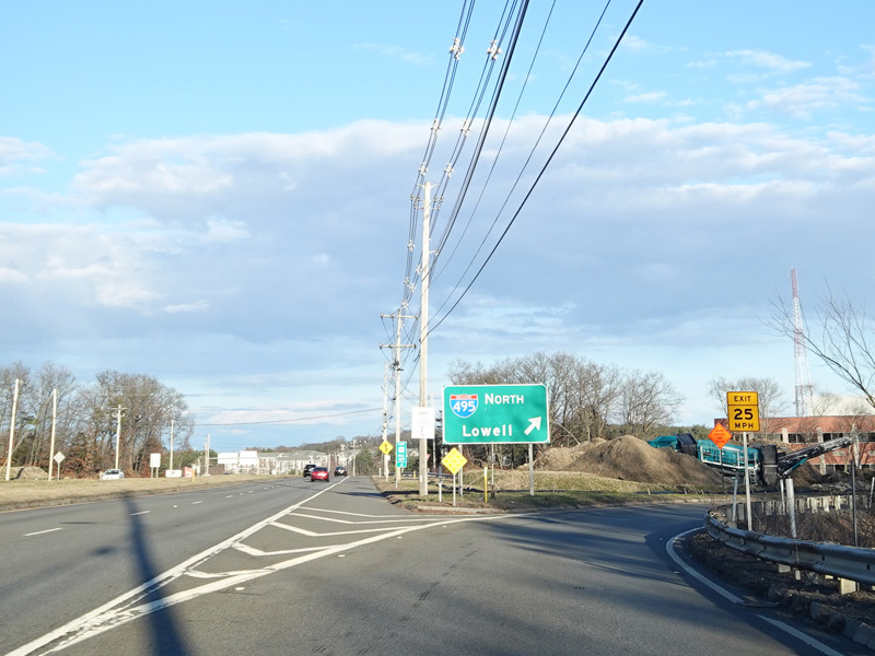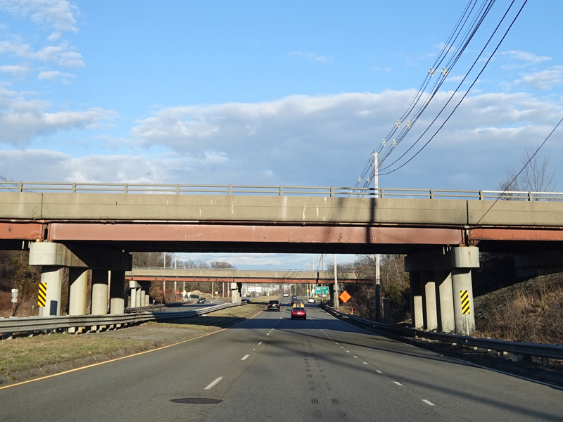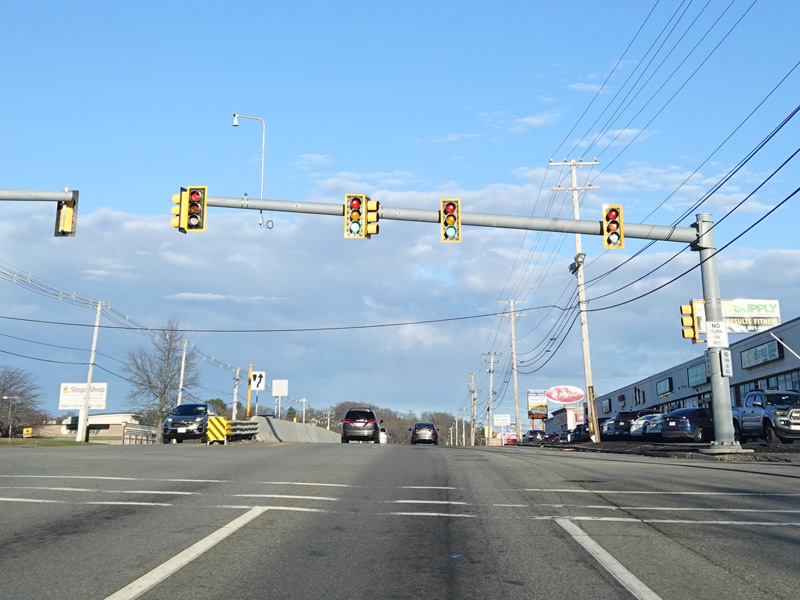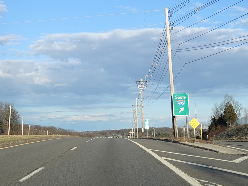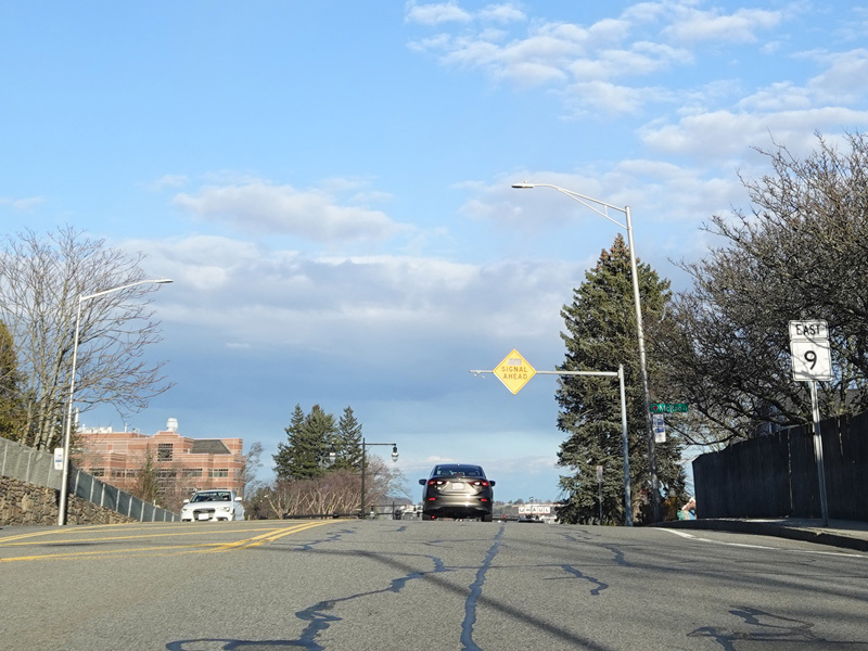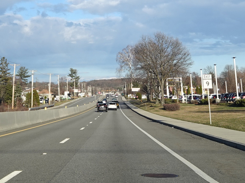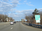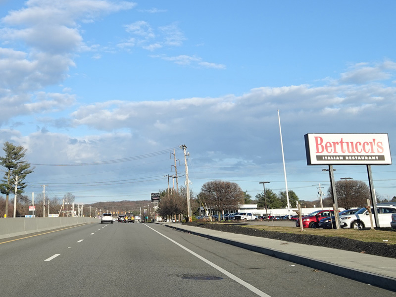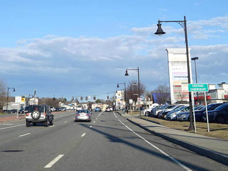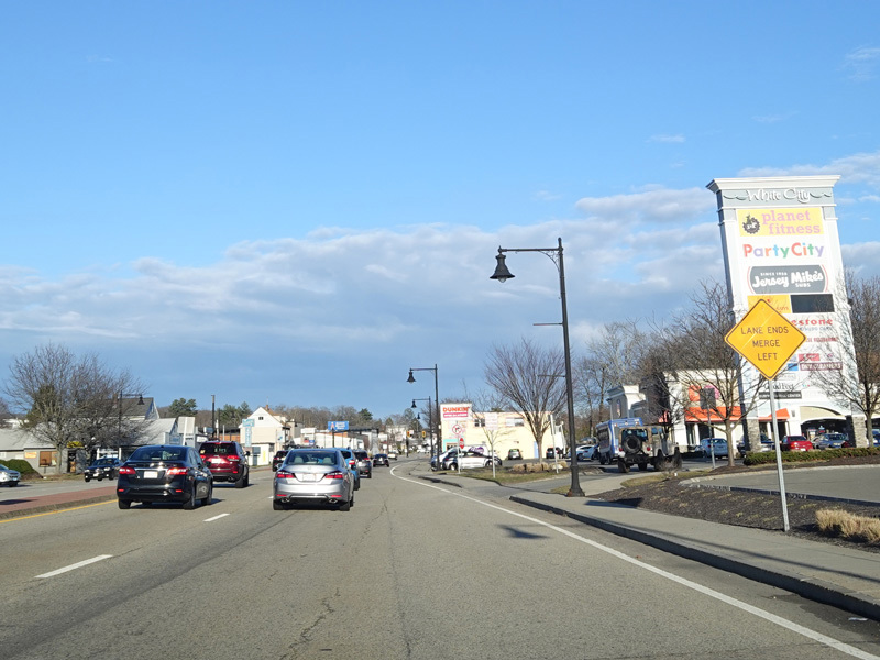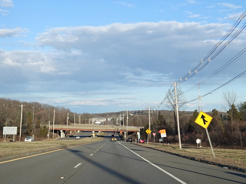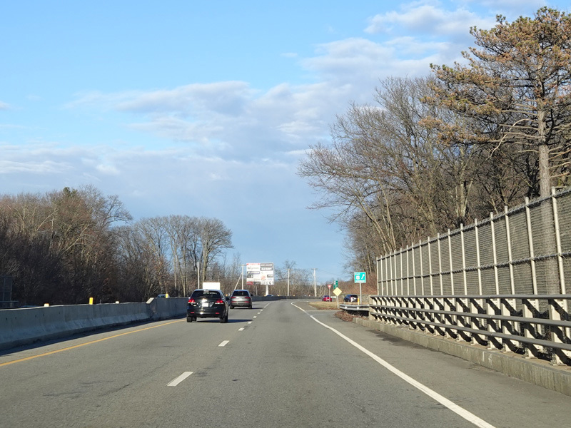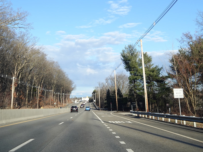Boston Turnpike continues east as a four-lane divided highway. There is a traffic light at South Street.
