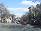 Belmont Street widens to become a four-lane divided highway. There are traffic lights at Shrewsbury Street and Plantation Street.