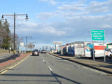 Boston Turnpike runs east as a four-lane divided highway. There are traffic lights at Svenson Road, Oak Street, and Lake Street.