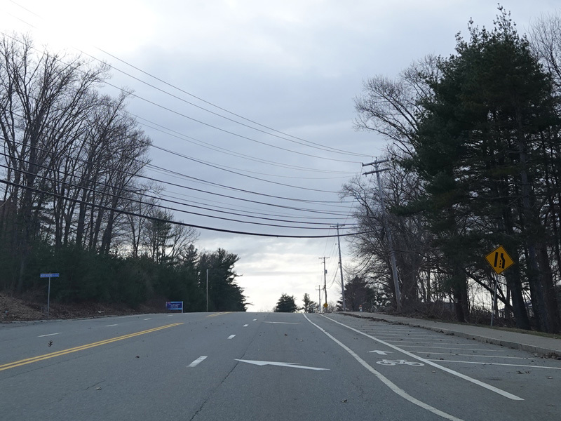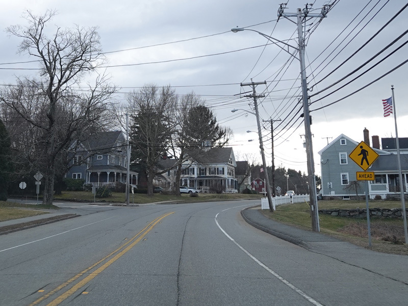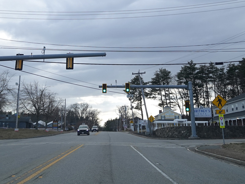Welcome to Northborough! Main Street runs west as a two-lane undivided road. There is a traffic light at Bartlett Street.