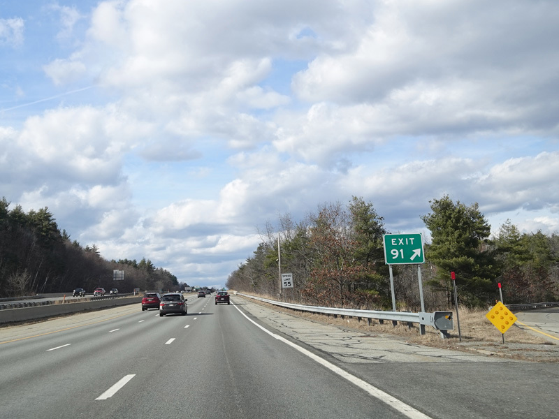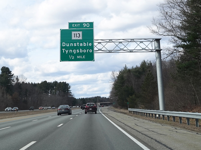 Exit 91 is for Middlesex Road and Daniel Webster Highway. It is the last exit in Massachusetts. US 3 continues straight ahead into New Hampshire as the Everett Turnpike.