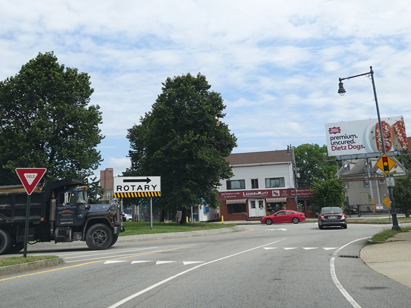 Fresh Pond Parkway ends at a rotary at Concord Avenue. Proceed around the rotary to the left to stay on MA 2/MA 16/US 3.